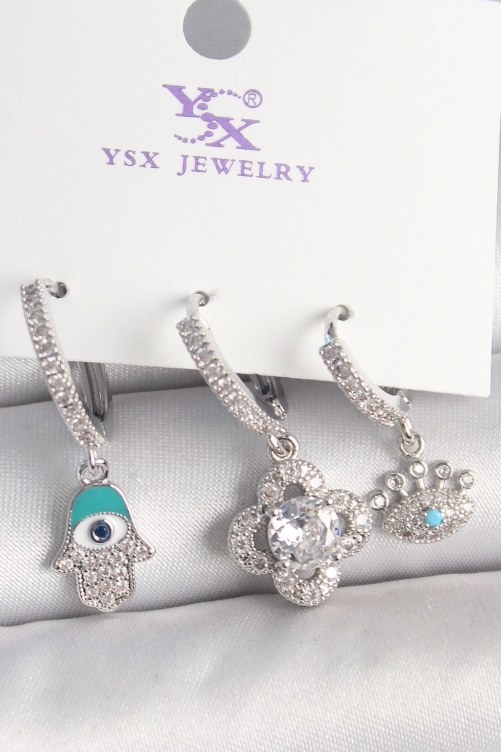 Dodes Dodes Pirinç Gümüş Renk Zirkon Taşlı Fatma Ana Yonca Figür Göz Detay 3'Lü Kadın Kombin Küpe TG27BKP10450