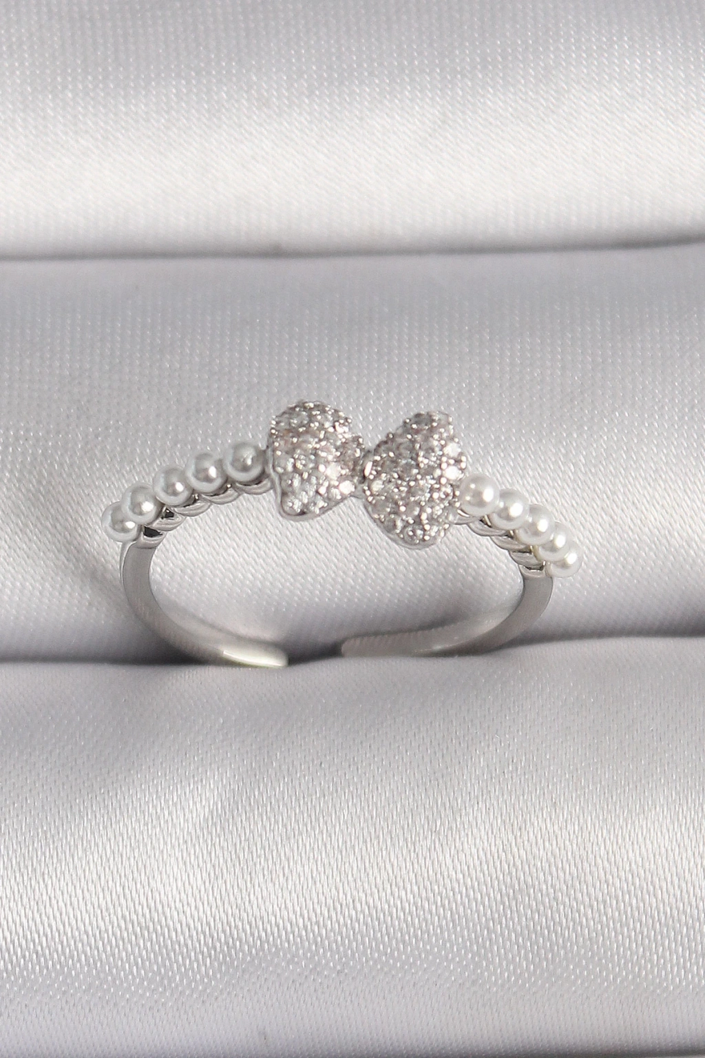 Dodes Dodes Pirinç Gümüş Renk Zirkon Taşlı Fiyonk İnci Detay Ayarlanabilir Yüzük TG27BYK3526