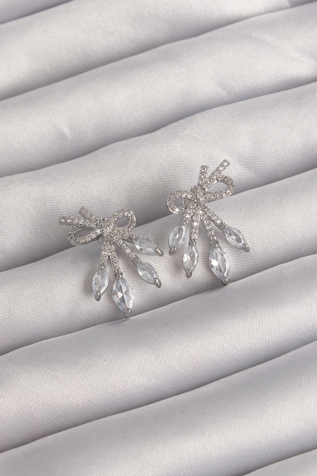 Dodes Dodes Pirinç Gümüş Renk Zirkon Taşlı Fiyonk Küpe TG27BKP9292