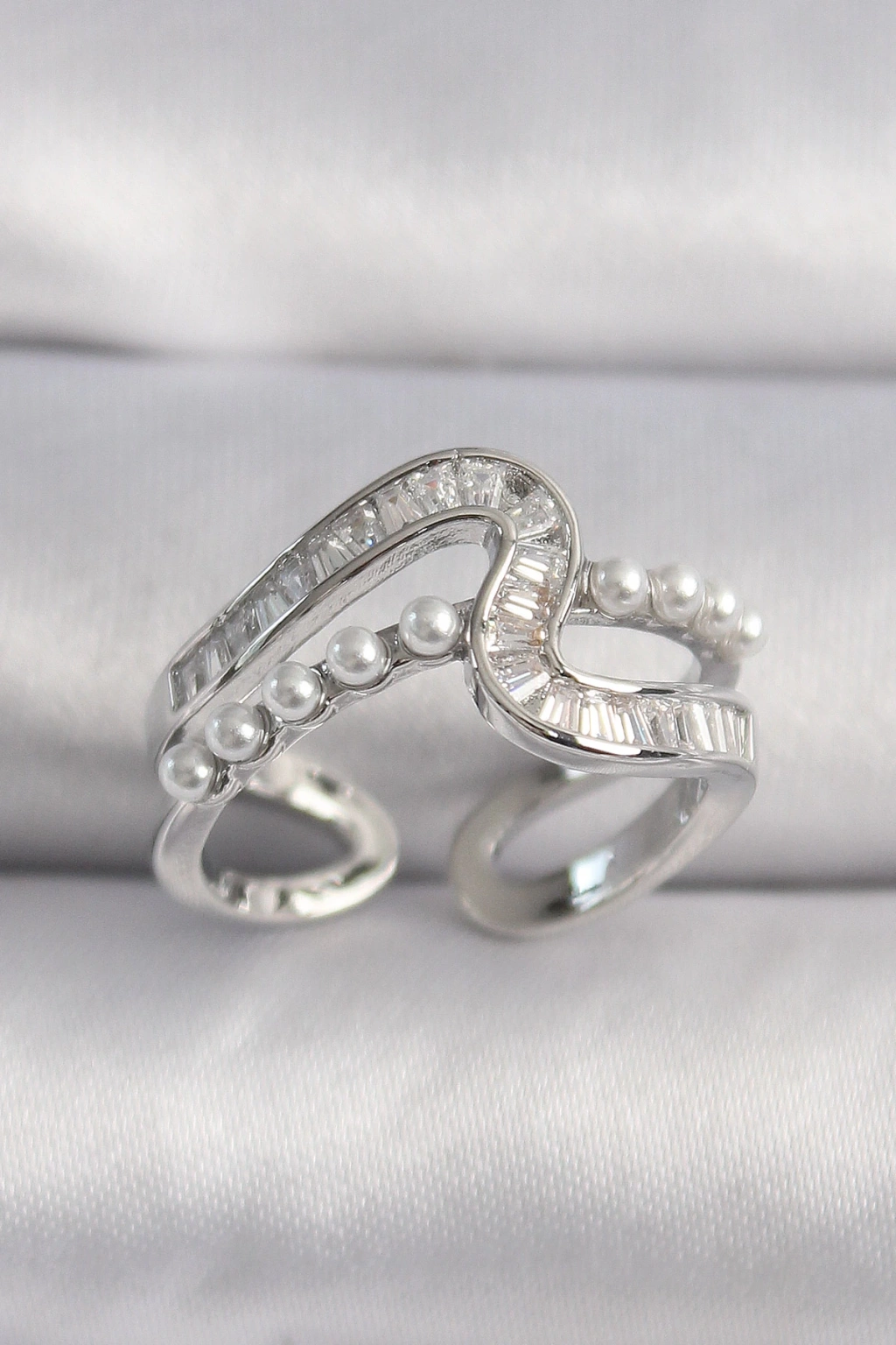 Dodes Dodes Pirinç Gümüş Renk Zirkon Taşlı İnci Detay VIP Seri Kadın Yüzük TG27BYK3519