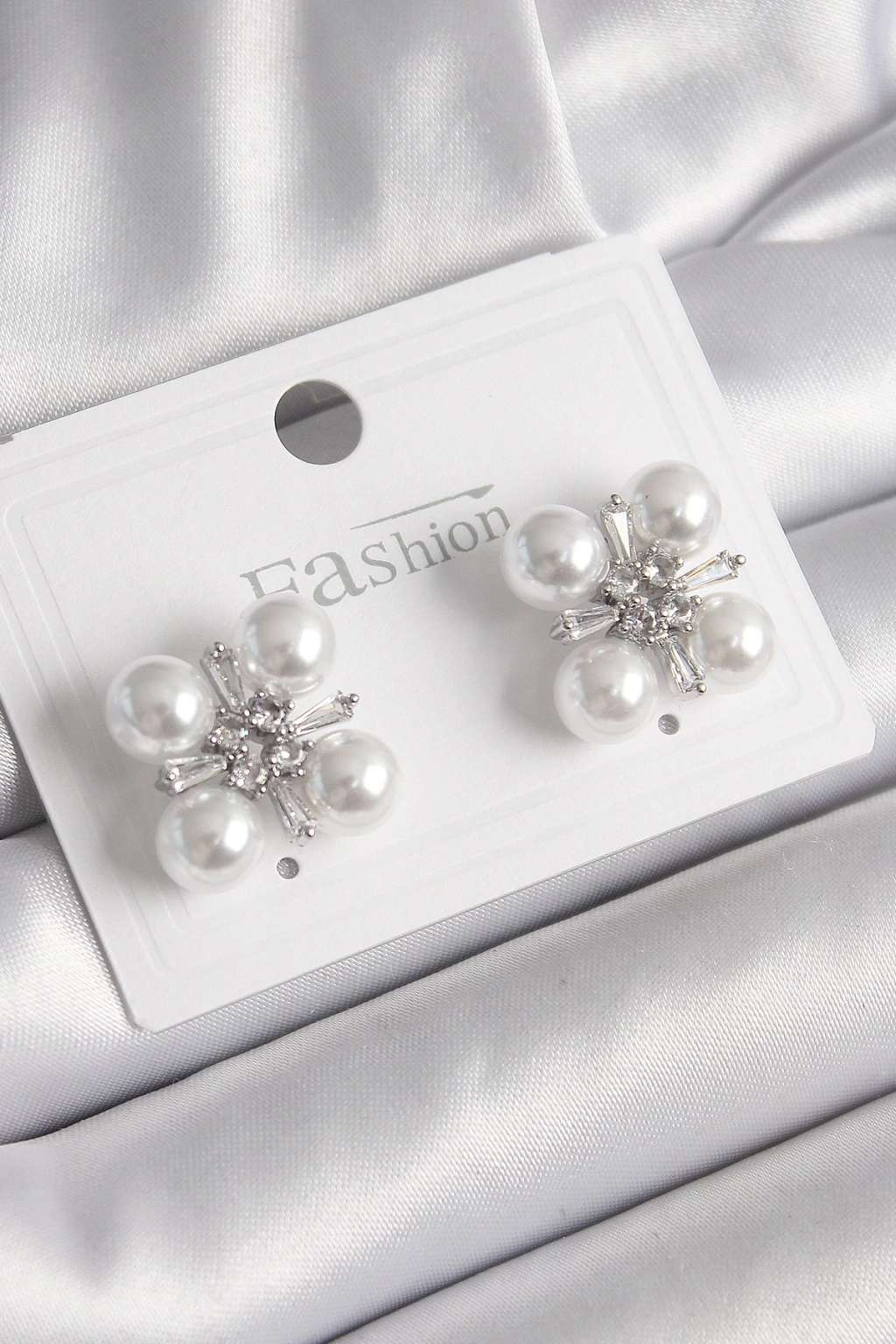Dodes Dodes Pirinç Gümüş Renk Zirkon Taşlı İncili Kadın Küpe TG27BKP9948