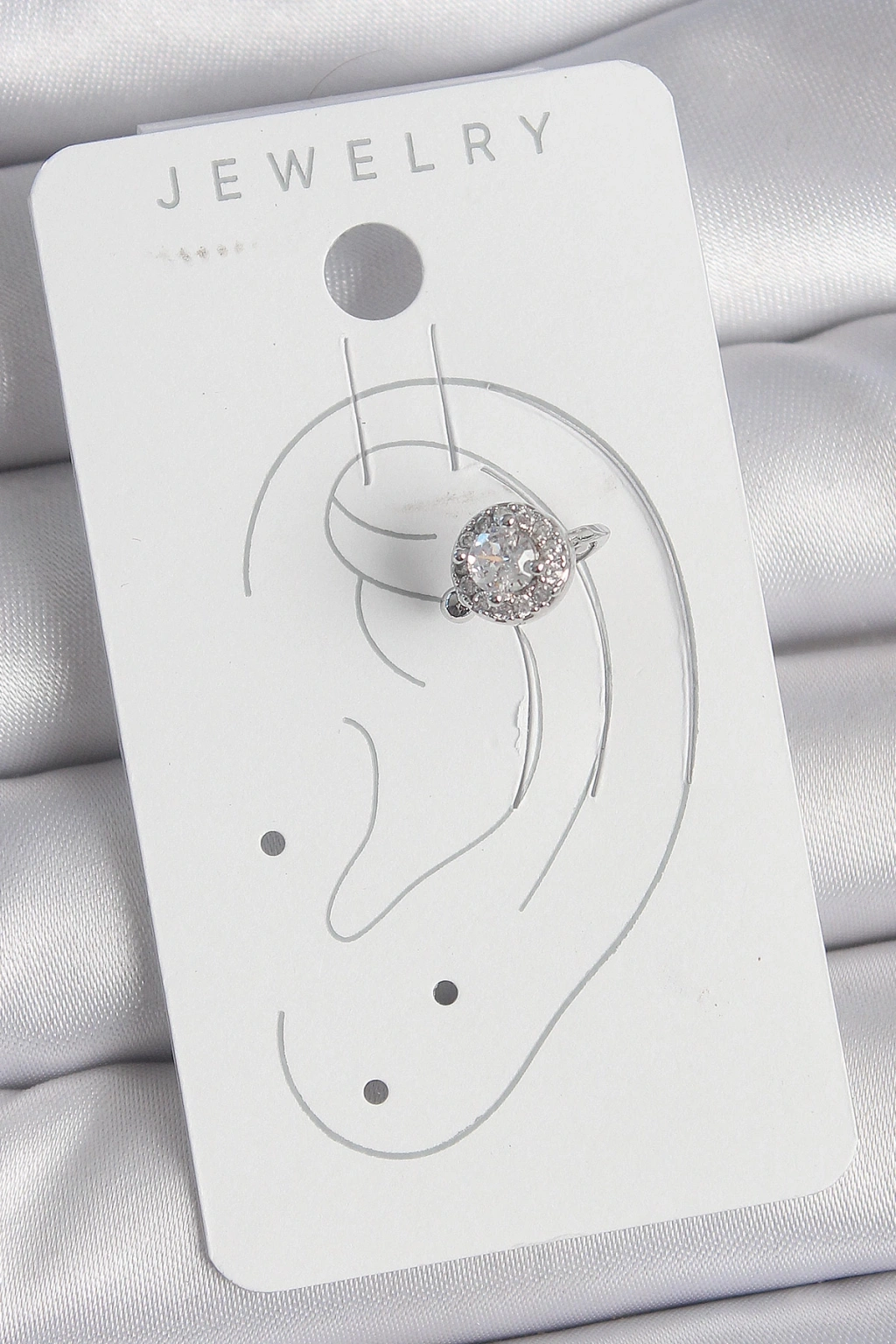 Dodes Dodes Pirinç Gümüş Renk Zirkon Taşlı Kadın Kıkırdak Model Küpe TG27BKP10559
