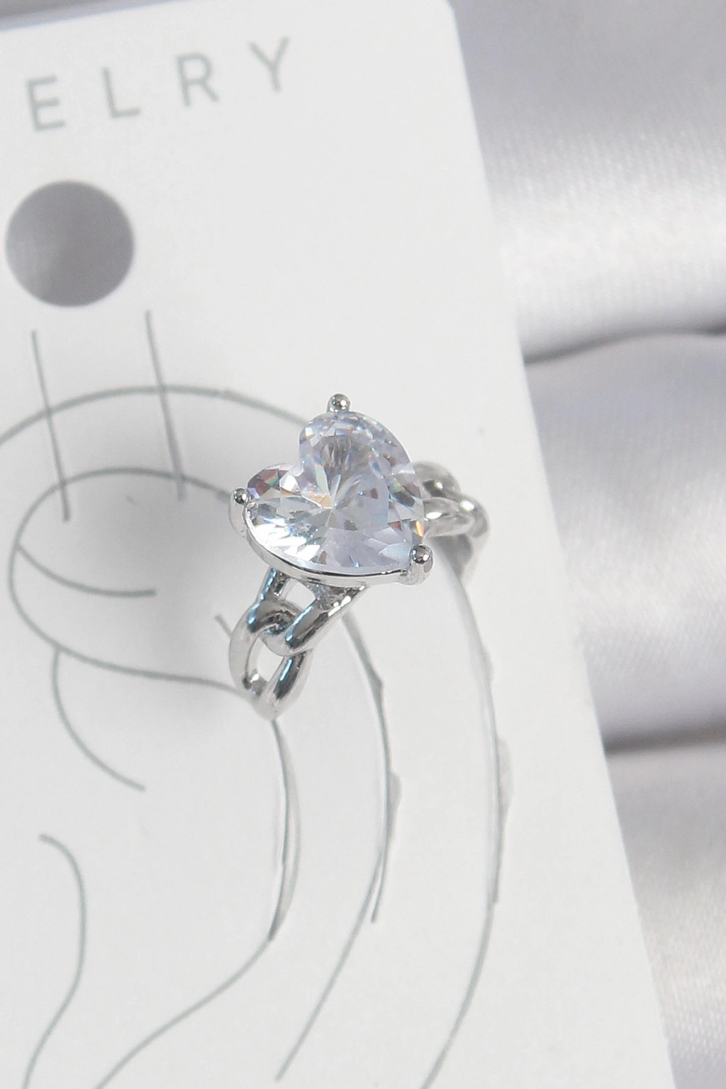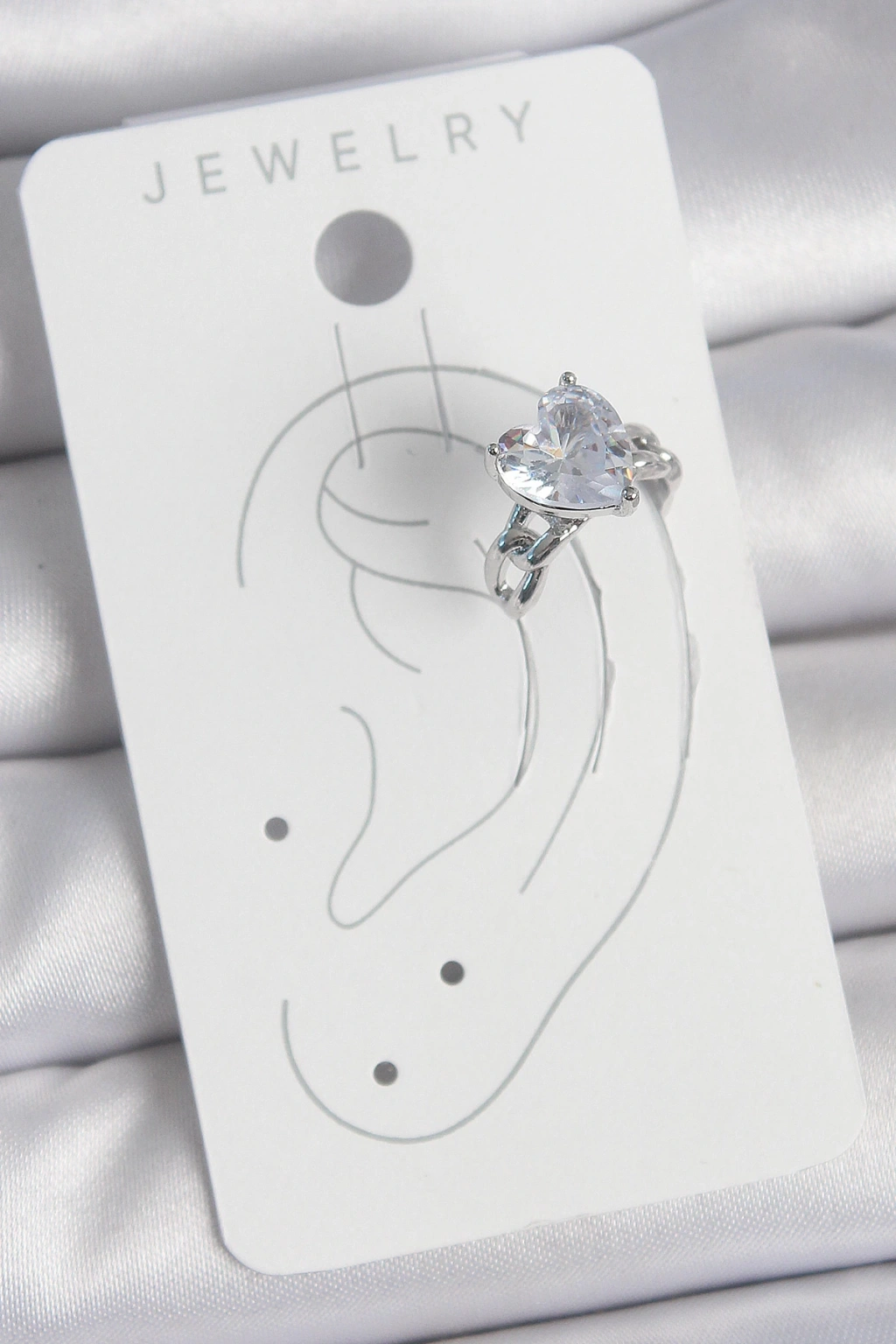 Dodes Dodes Pirinç Gümüş Renk Zirkon Taşlı Kalp Model Kadın Kıkırdak Küpe TG27BKP10563