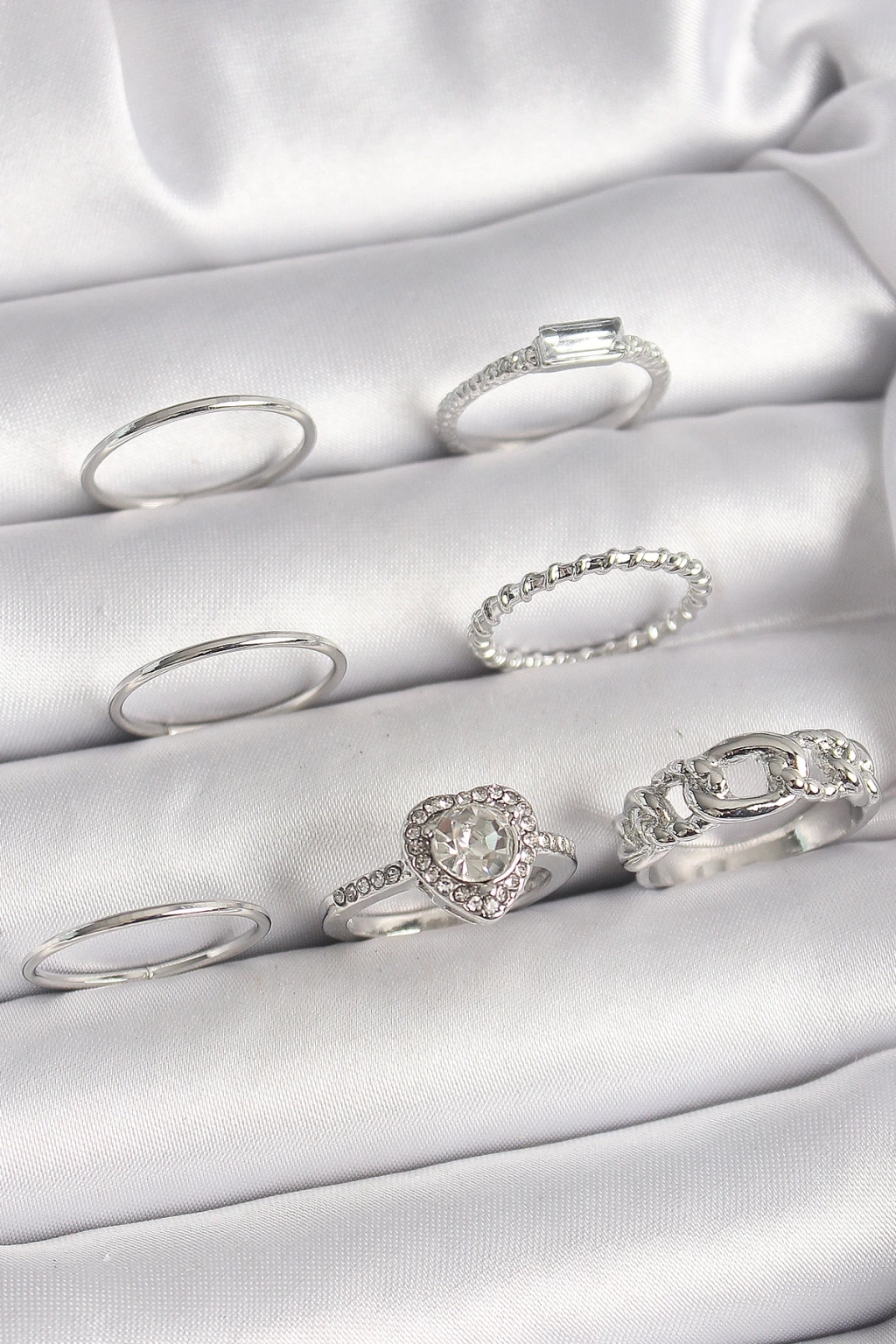 Dodes Dodes Pirinç Gümüş Renk Zirkon Taşlı Kalp Model Kadın Yüzük Kombini TG27BYK3661