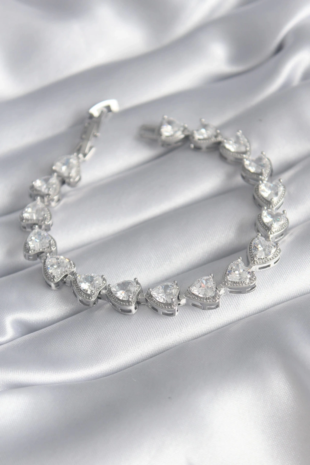 Dodes Dodes Pirinç Gümüş Renk Zirkon Taşlı Kalp Model VIP Seri Kadın Bileklik TG27BB5844