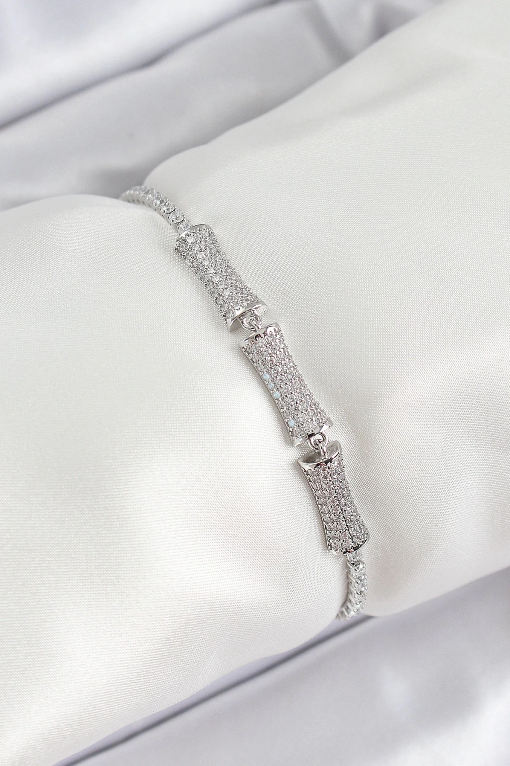 Dodes Dodes Pirinç Gümüş Renk Zirkon Taşlı Kemik Model Kadın Bileklik TG27BB7071