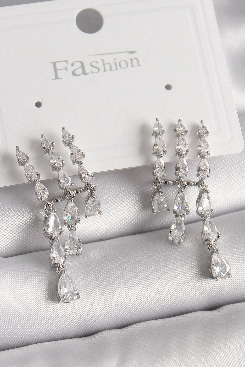 Dodes Dodes Pirinç Gümüş Renk Zirkon Taşlı Yağmur Model Kadın Küpe TG27BKP9936