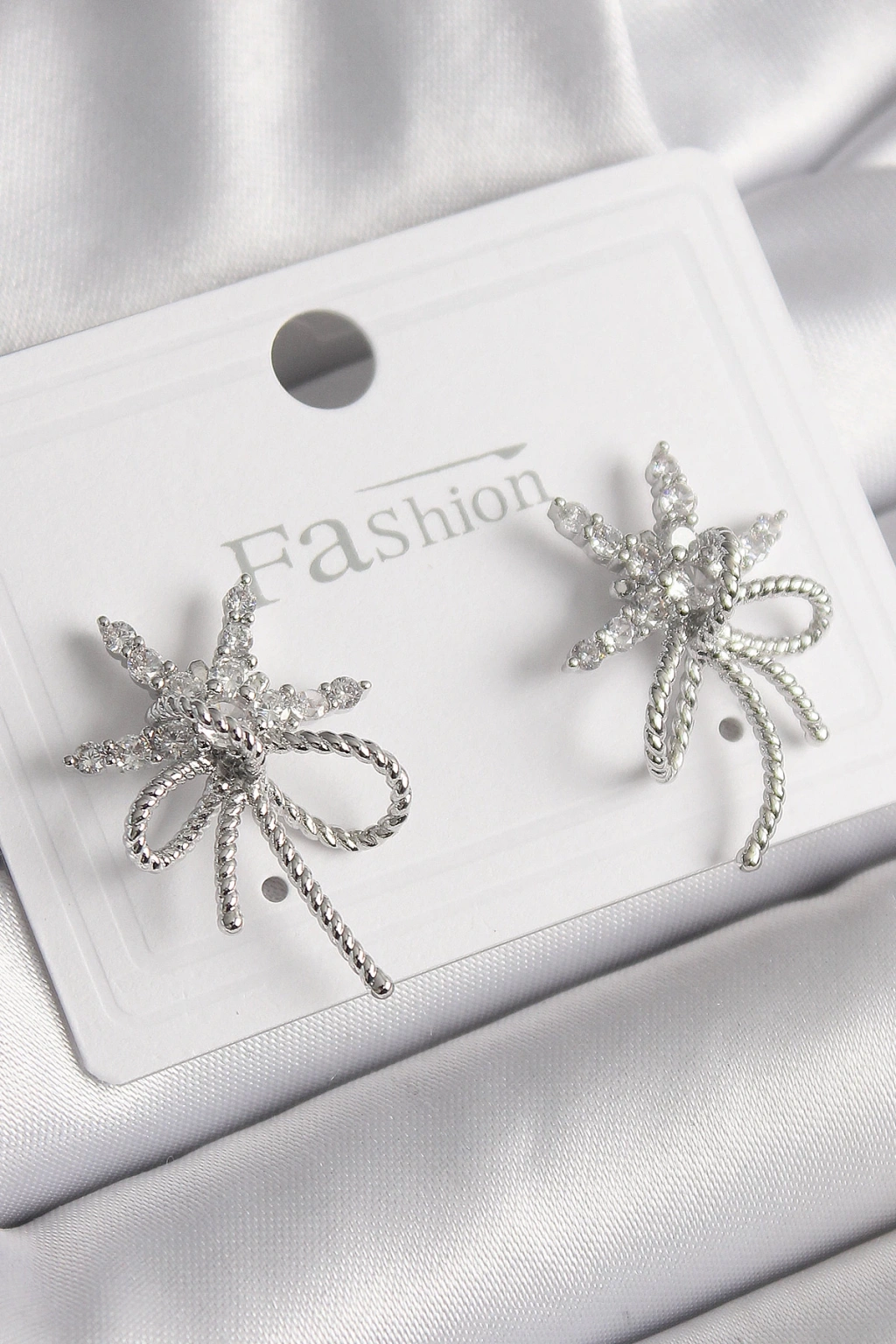 Dodes Dodes Pirinç Gümüş Renk Zirkon Taşlı Yıldız Düğüm Model Kadın Küpe TG27BKP9952