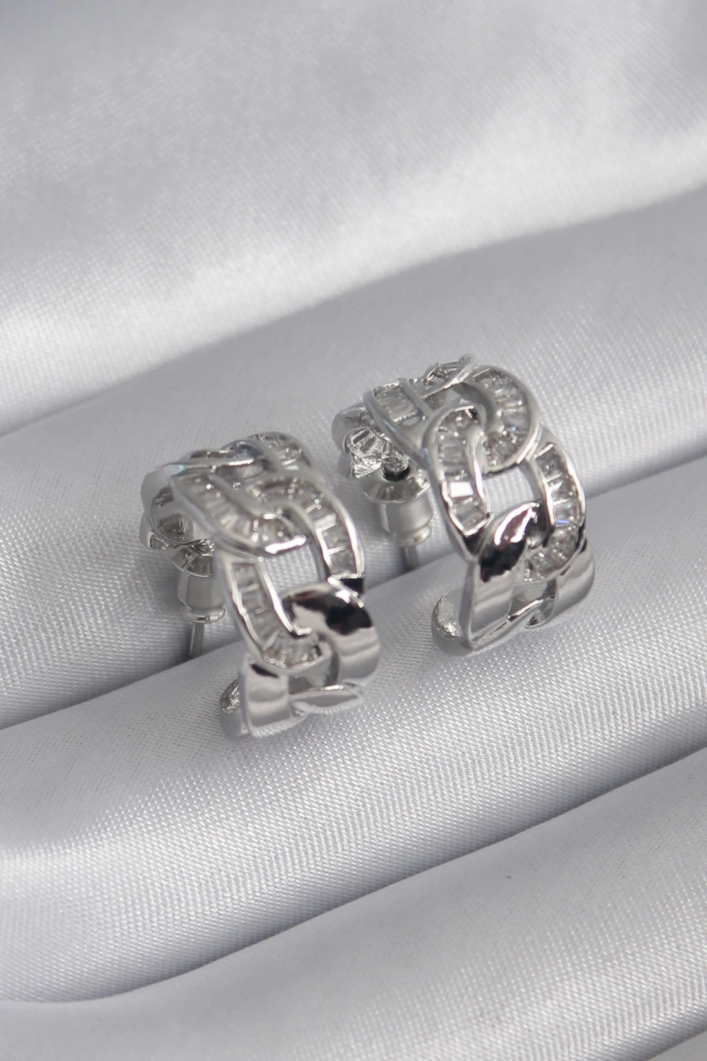 Dodes Dodes Pirinç Gümüş Renk Zirkon Taşlı Zincir Model Kadın Küpe TG27BKP9793