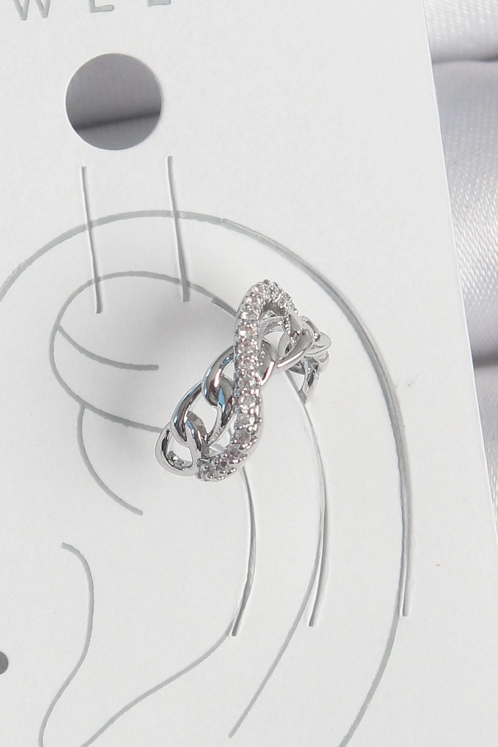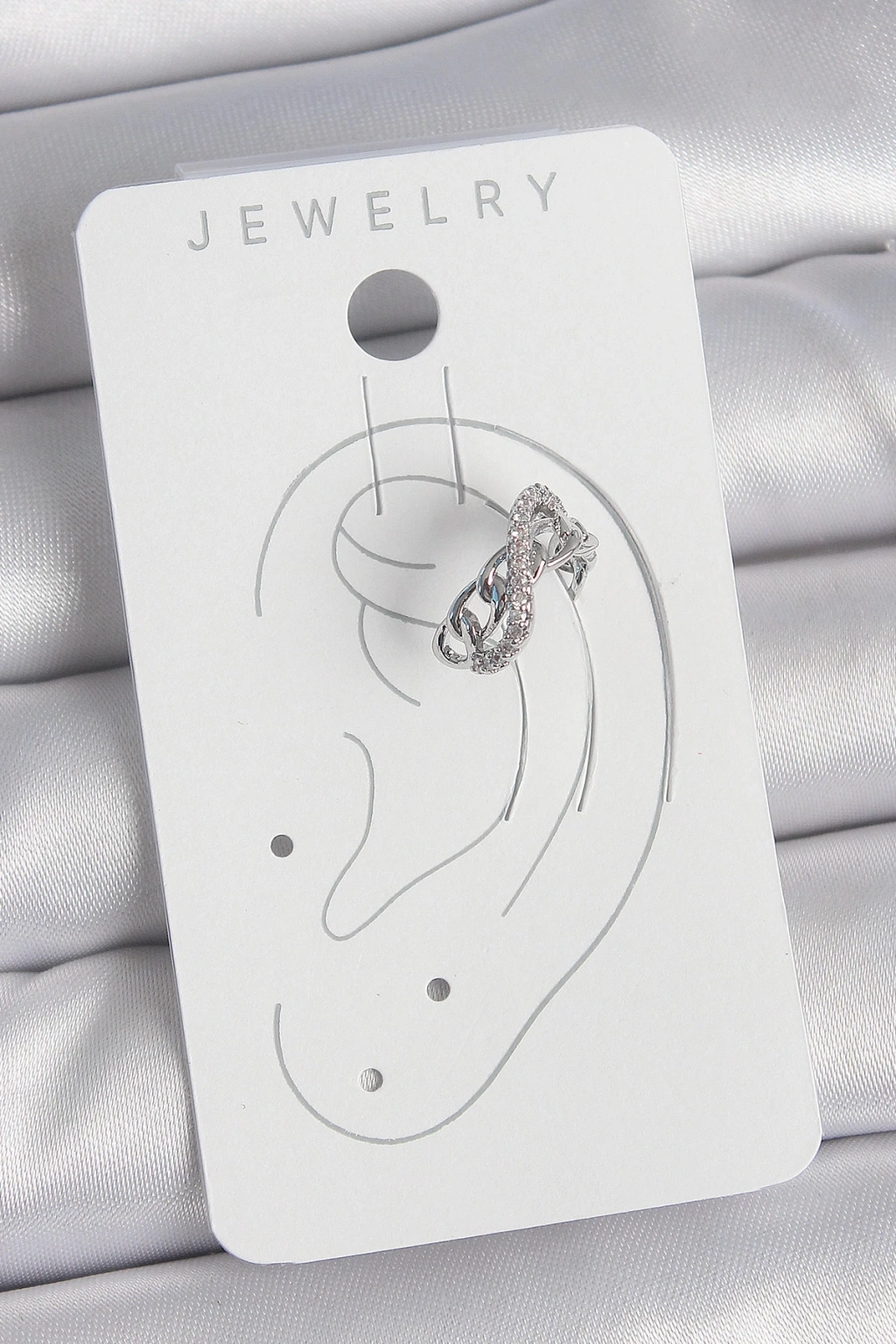 Dodes Dodes Pirinç Gümüş Renk Zirkon Taşlı Zincir Sonsuzluk Model Kadın Kıkırdak Küpe TG27BKP10553