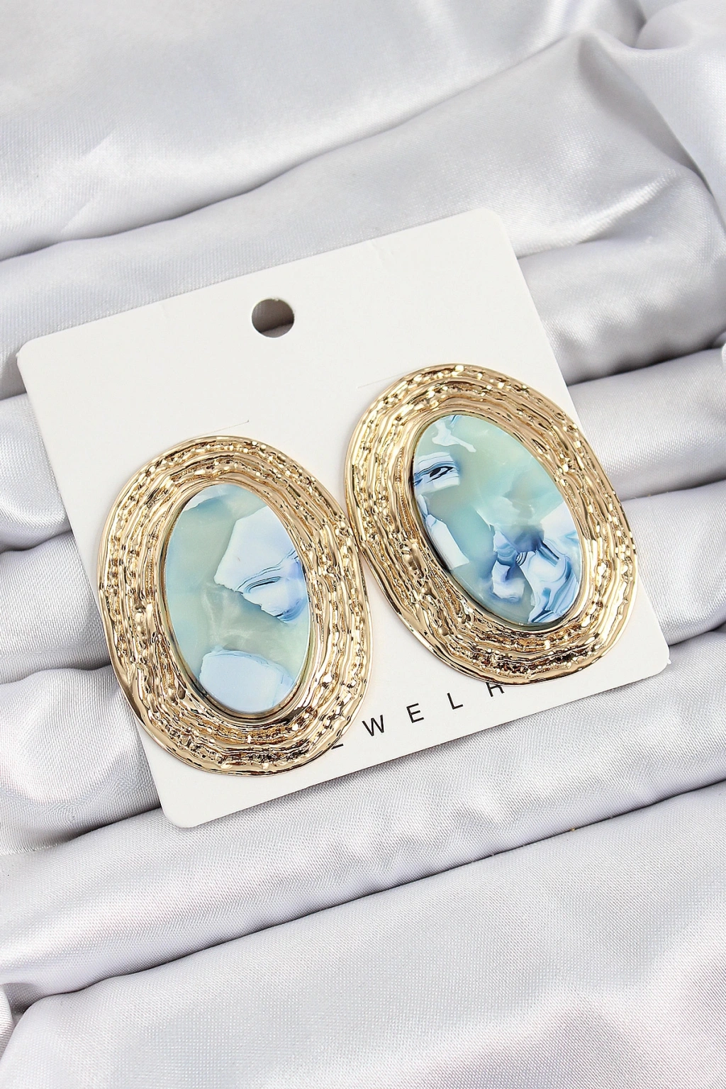 Dodes Dodes Pirinç Mermer Desenlli Mavi Sedef Oval Vintage Model Gold Renk Kadın Küpe TG27BKP10777
