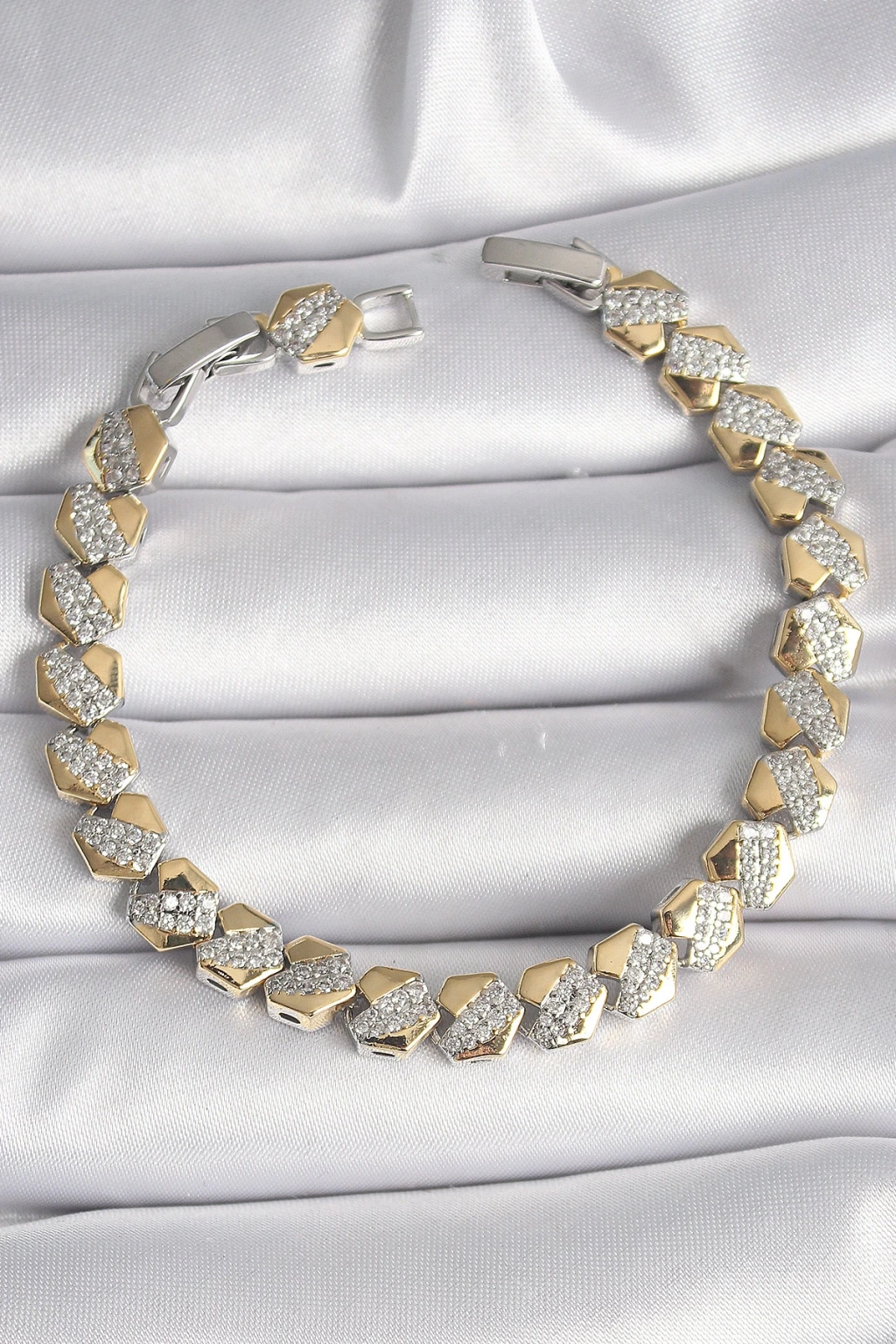 Dodes Dodes Pirinç Mix Renk Kalp Model Zirkon Taşlı VIP Seri Kadın Bileklik TG27BB6494