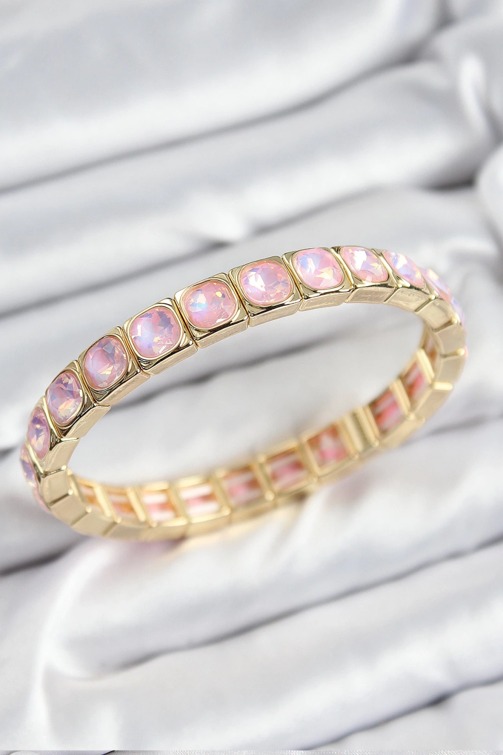 Dodes Dodes Pirinç Pembe Zirkon Taşlı Kare Model Gold Renk Lastikli Kadın Bileklik TG27BB7499