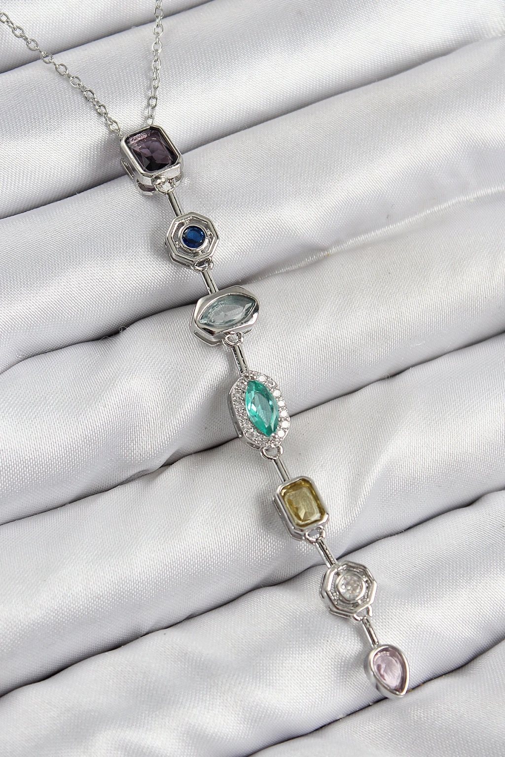 Dodes Dodes Pirinç Renkli Zirkon Taşlı Model Gümüş Renk 7 Element Kadın Y Kolye TG27BKO10440