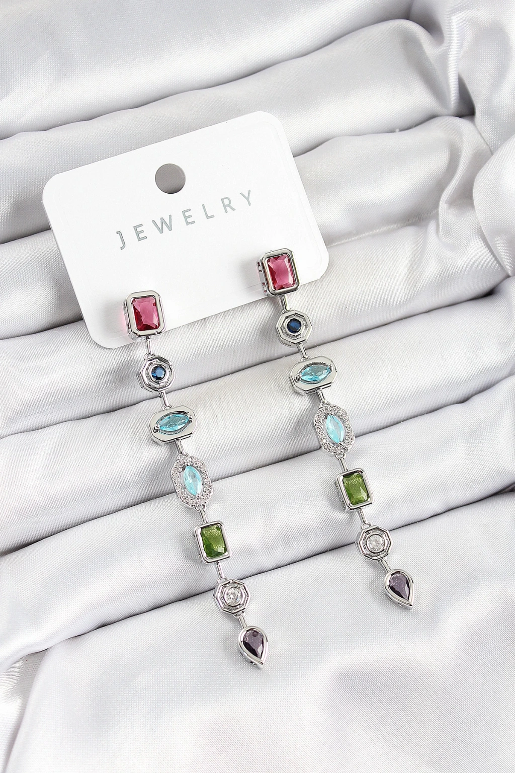 Dodes Dodes Pirinç Renkli Zirkon Taşlı Sallantılı Model Gümüş Renk Kadın Küpe TG27BKP10743