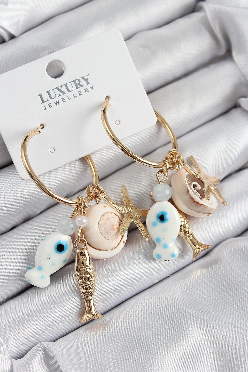 Dodes Dodes Pirinç Sallantılı Seramik Balık Ve Deniz Kabuğu Model Gold Renk Kadın Küpe TG27BKP11081