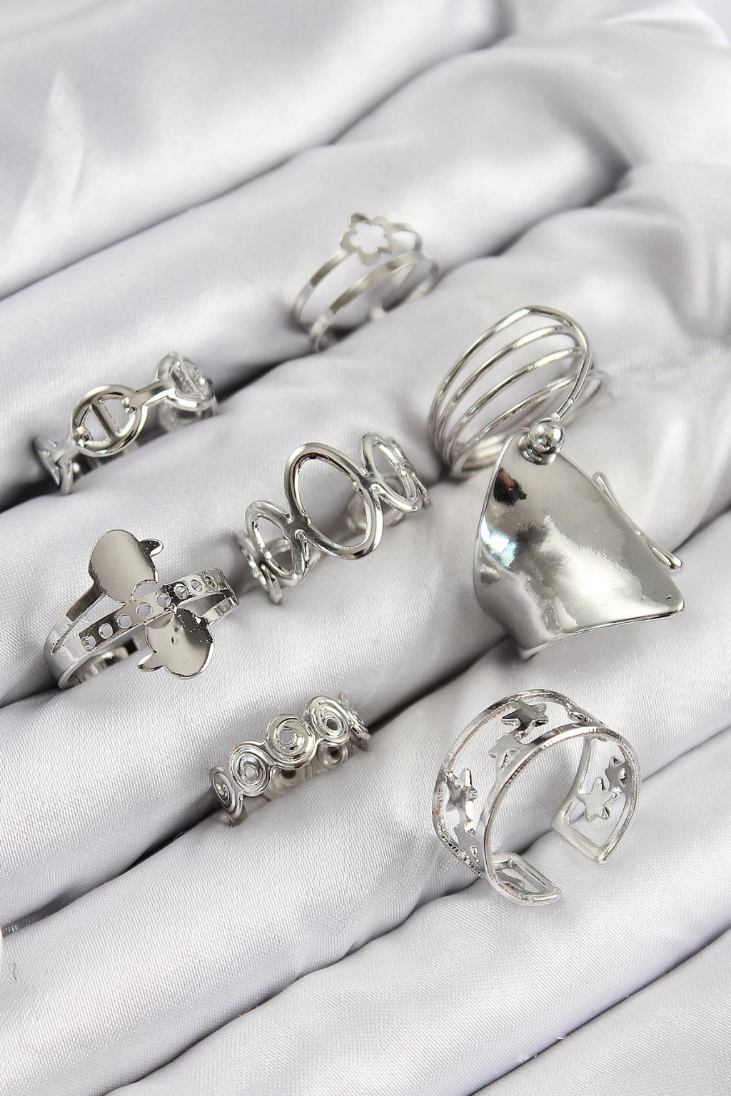 Dodes Dodes Pirinç Sarmal Ve Yıldız Model Gümüş Renk Kadın Yüzük Kombin Set TG27BYK3812