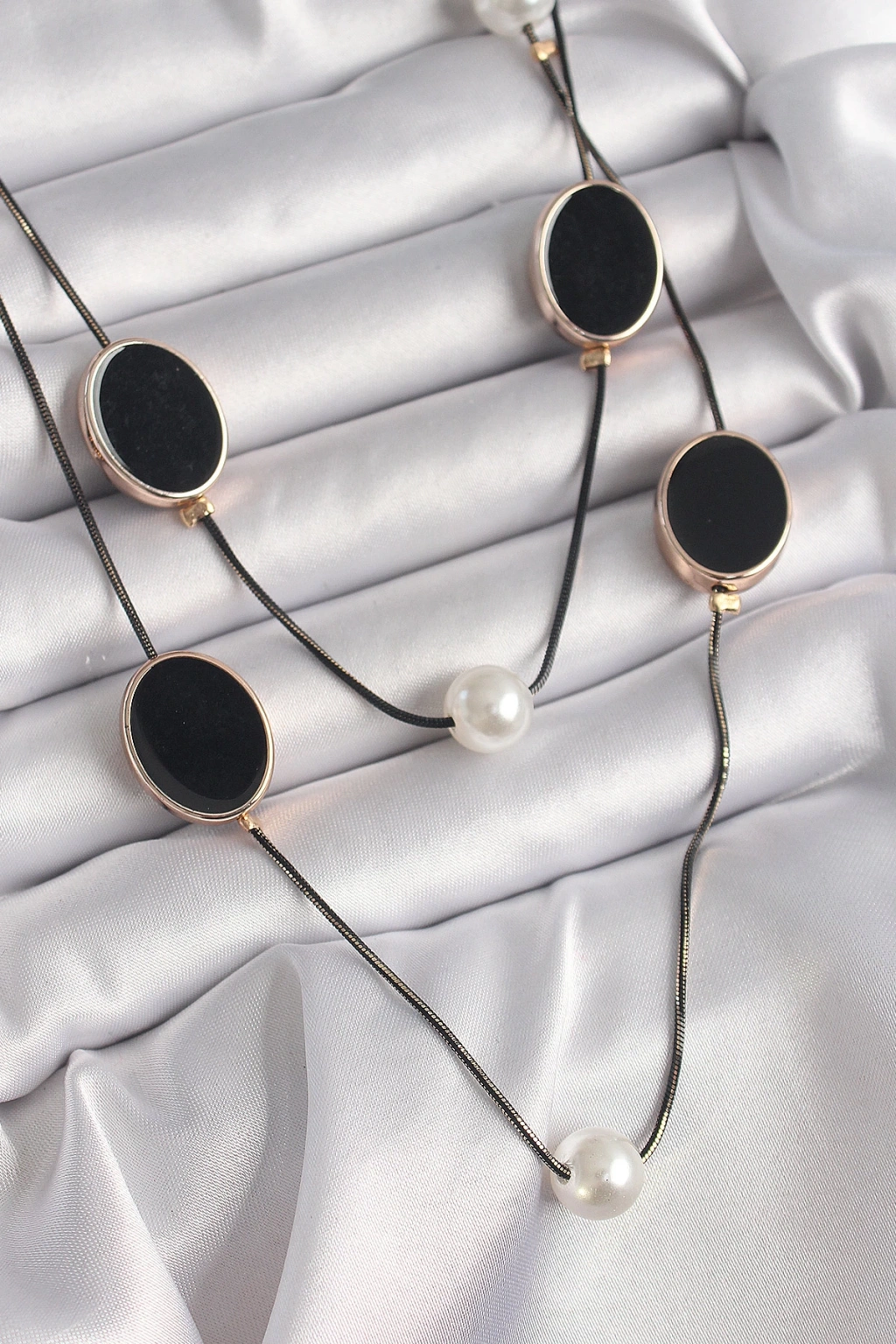 Dodes Dodes Pirinç Siyah Renk Zincir İnci Detaylı Çoklu Kadın Kolye TG27BKO9621