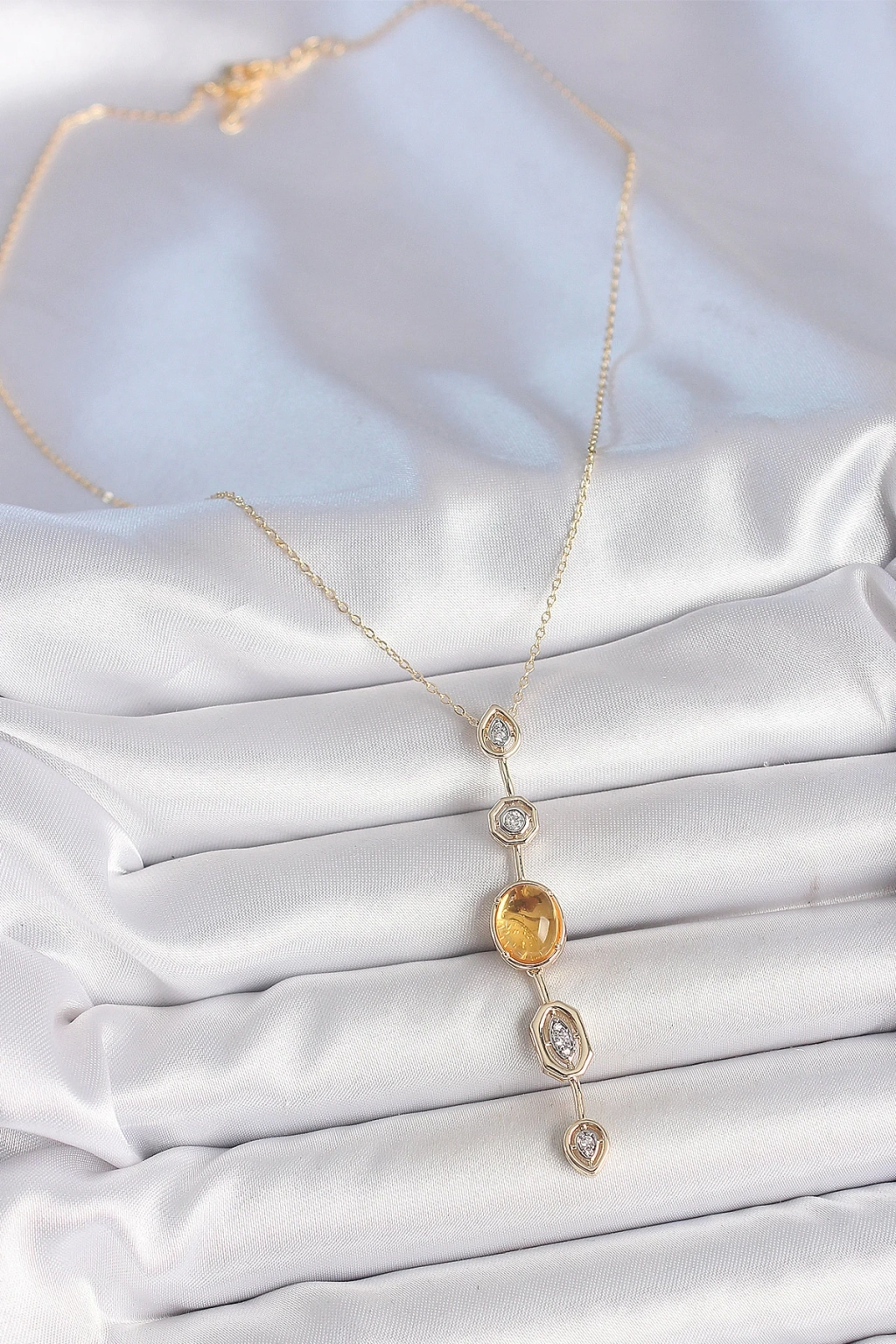 Dodes Dodes Pirinç Zincir Kehribar Sarı Gold Renk Zirkon Taşlı Y Kolye TG27BKO10230