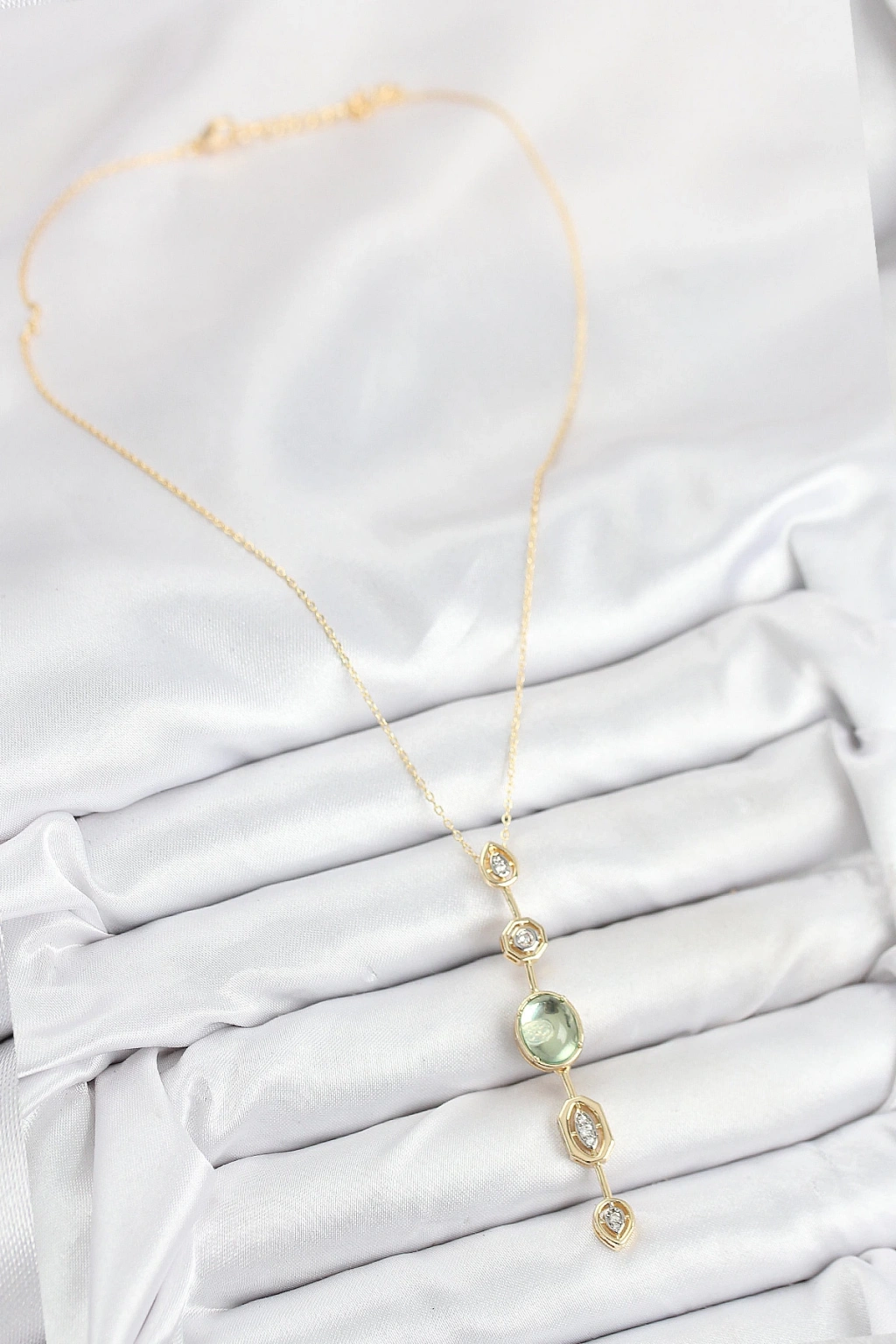 Dodes Dodes Pirinç Zincir Yeşil Gold Renk Zirkon Taşlı Y Kolye TG27BKO10557