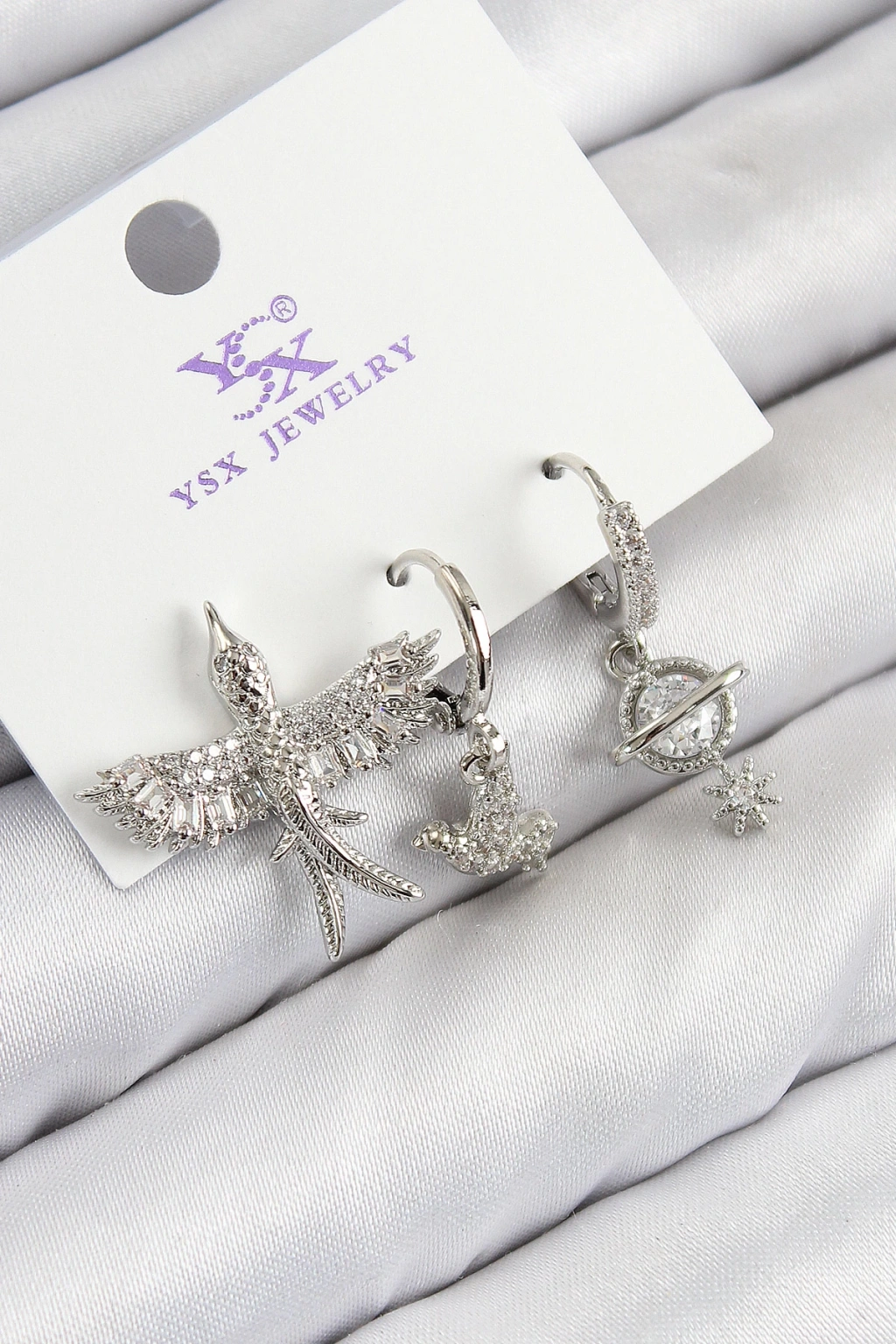 Dodes Dodes Pirinç Zirkon Taşlı 3'lü Kuş Model Gümüş Renk Kadın Küpe TG27BKP11124