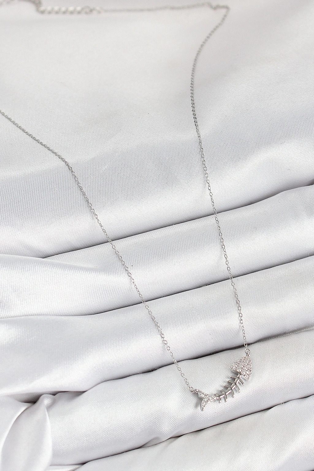 Dodes Dodes Pirinç Zirkon Taşlı Balık Kılçığı Model Gümüş Renk Kadın Kolye TG27BKO10413
