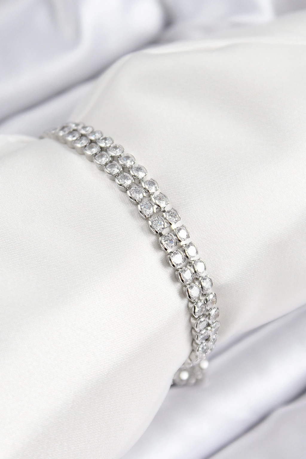 Dodes Dodes Pirinç Zirkon Taşlı Çift Sıra Model Gümüş Renk Asansörlü Kadın Bileklik TG27BB7738