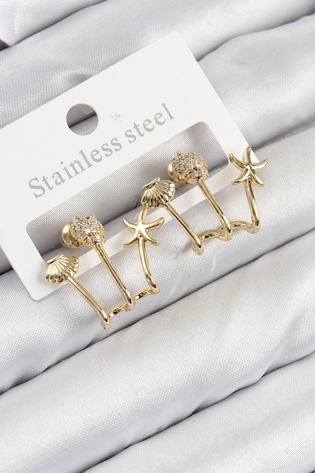 Dodes Dodes Pirinç Zirkon Taşlı Deniz Yıldızı ve İstiridye Model Gold Renk Kadın Küpe TG27BKP11103