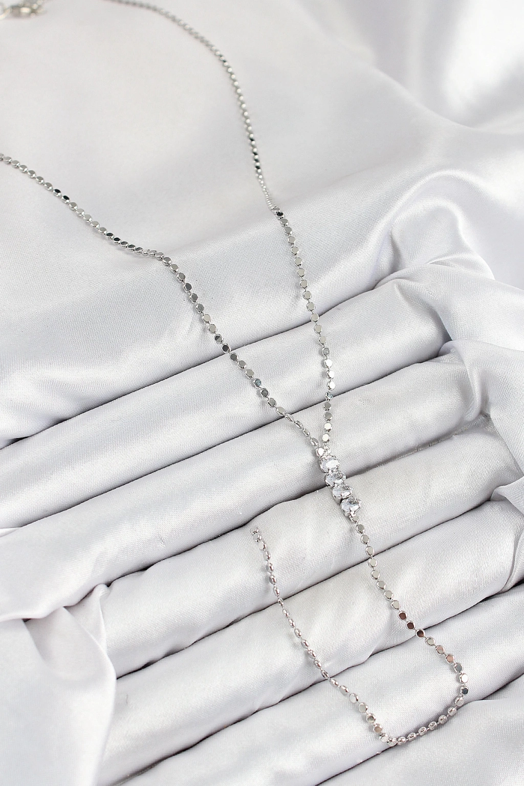 Dodes Dodes Pirinç Zirkon Taşlı Ezme Zincirli Model Gümüş Renk Y Kolye TG27BKO10464