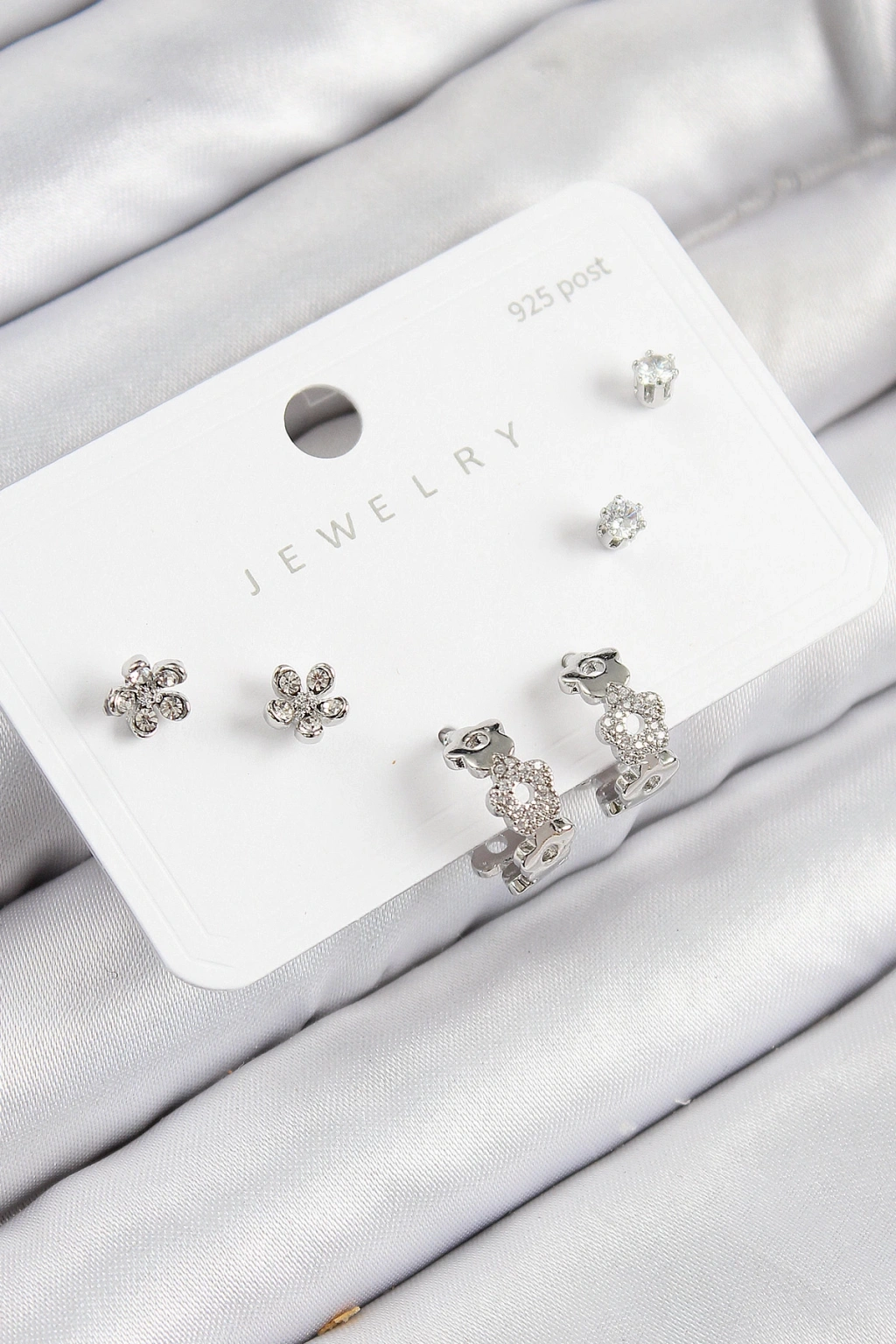 Dodes Dodes Pirinç Zirkon Taşlı Halka Model Gümüş Renk 925 Ayar Gümüş Çivi Kadın Küpe Set TG27BKP11185