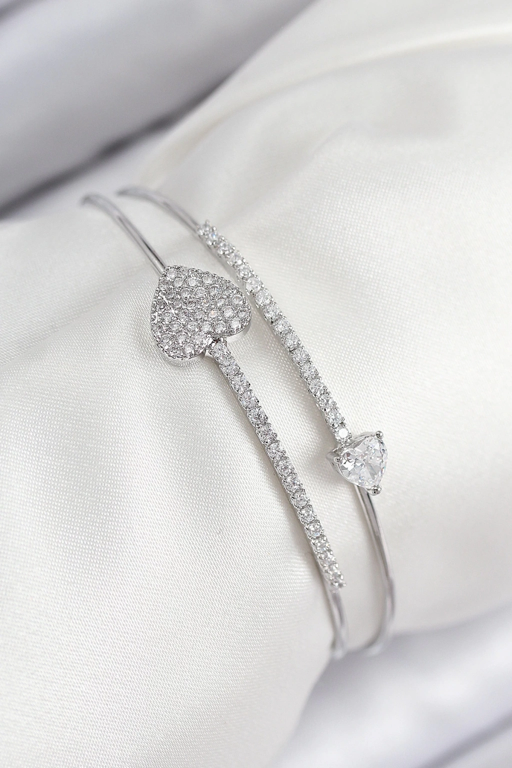 Dodes Dodes Pirinç Zirkon Taşlı Kalp Model Gümüş Renk Kadın Bileklik TG27BB7900