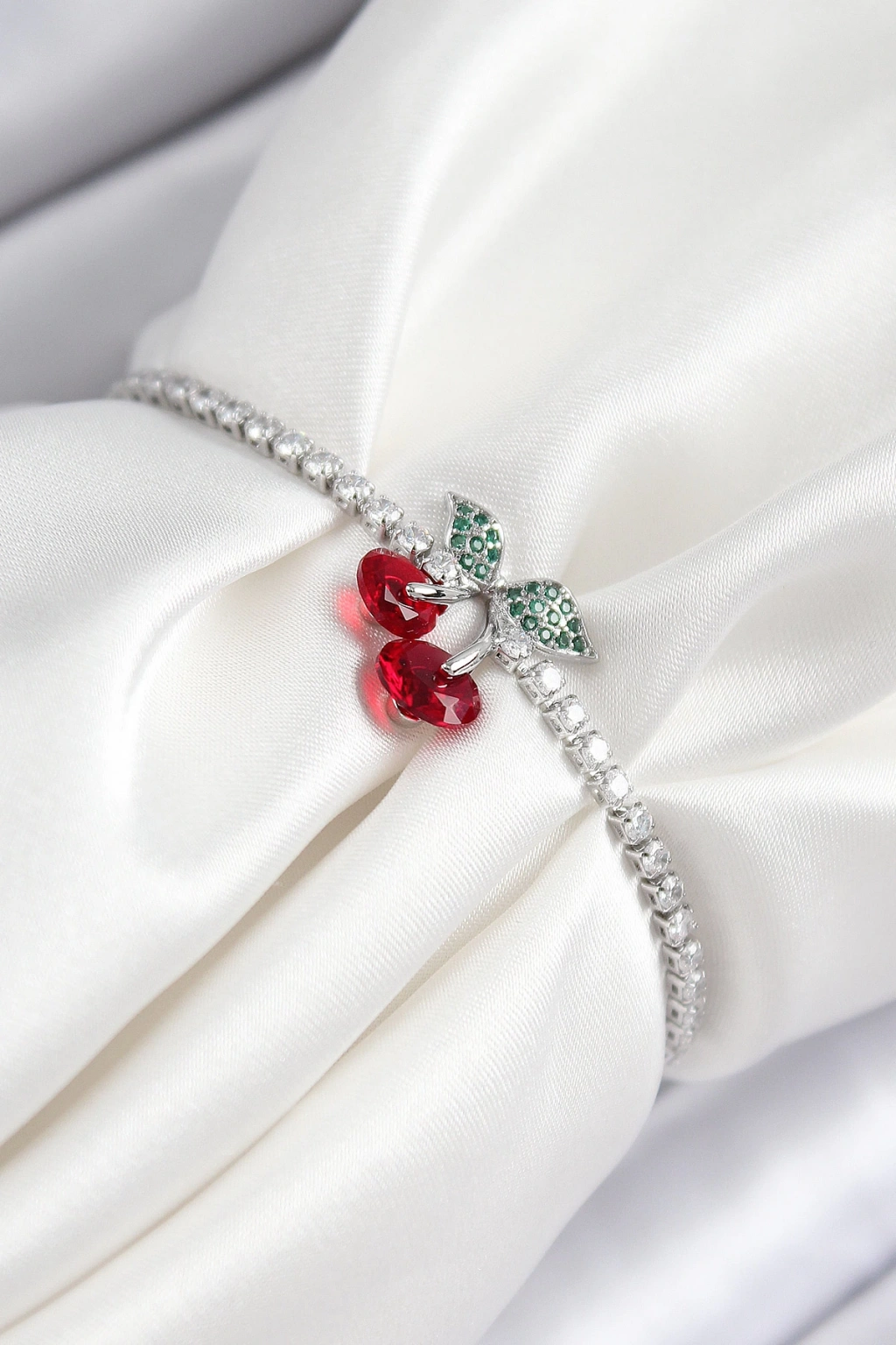 Dodes Dodes Pirinç Zirkon Taşlı Kiraz Model Gümüş Renk Asansörlü Kadın Bileklik TG27BB7454