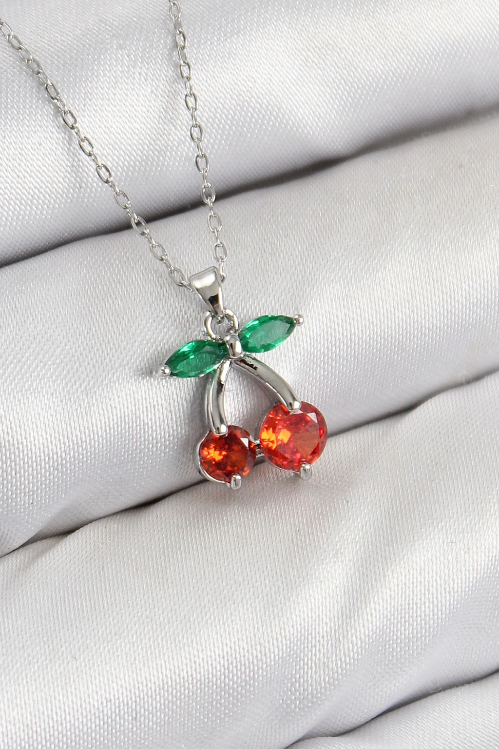 Dodes Dodes Pirinç Zirkon Taşlı Kiraz Model Gümüş Renk Kadın Kolye TG27BKO10421