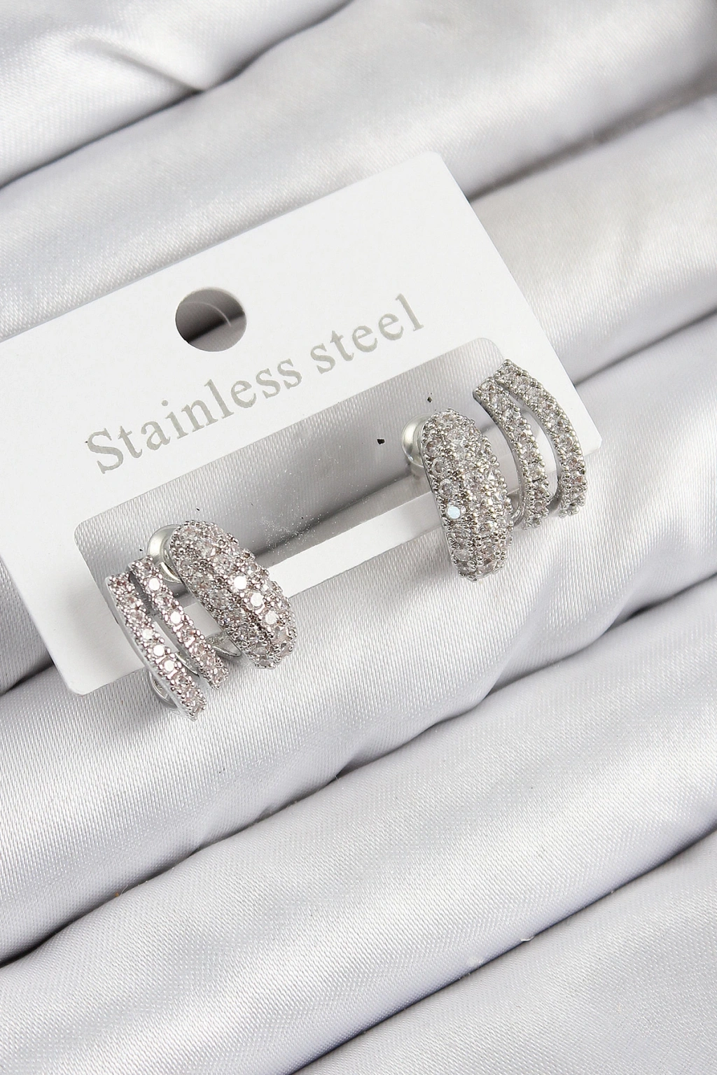 Dodes Dodes Pirinç Zirkon Taşlı Kıvrımlı Model Gümüş Renk Kadın Küpe TG27BKP11113