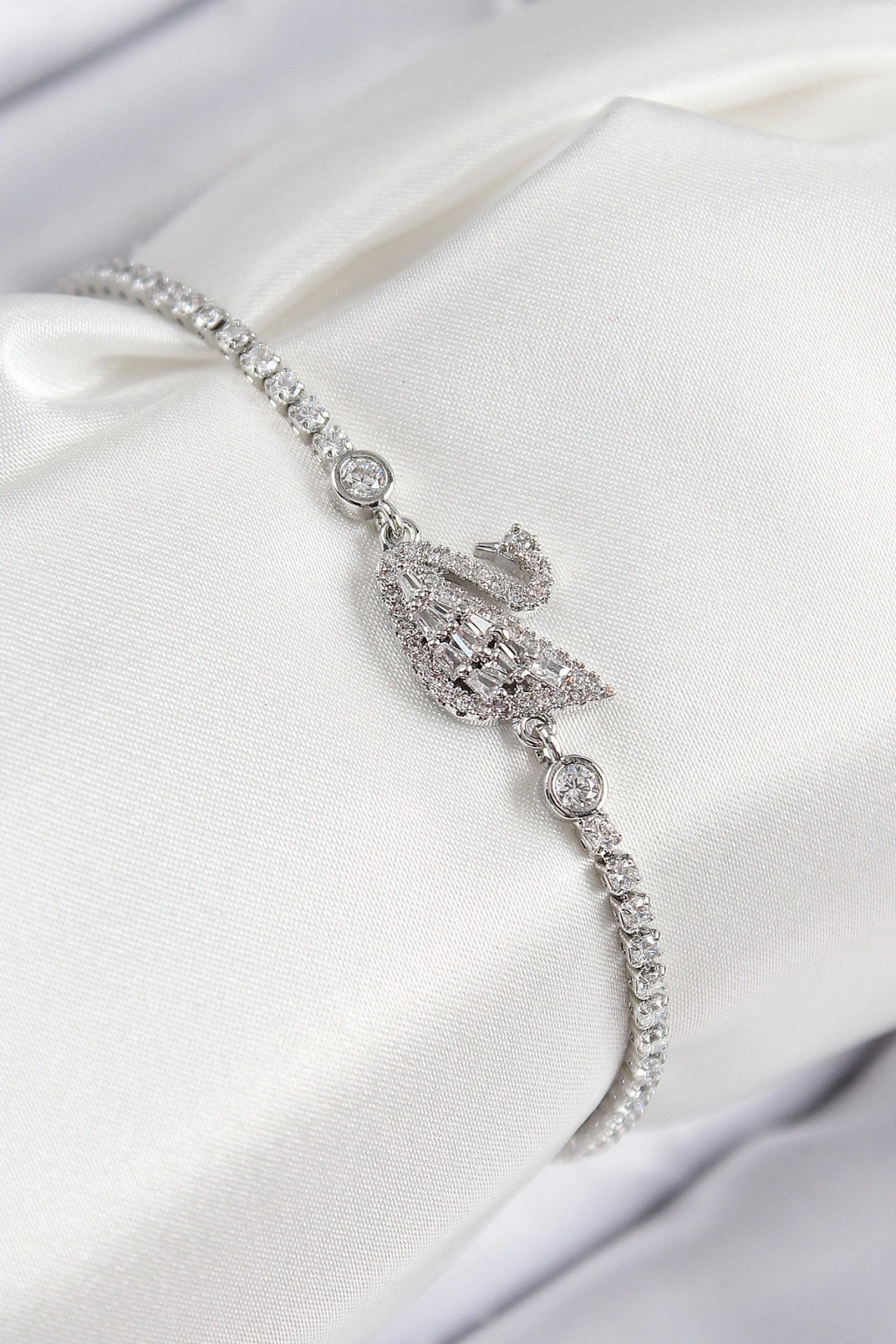 Dodes Dodes Pirinç Zirkon Taşlı Kuğu Model Gümüş Renk Kadın Bileklik TG27BB7890