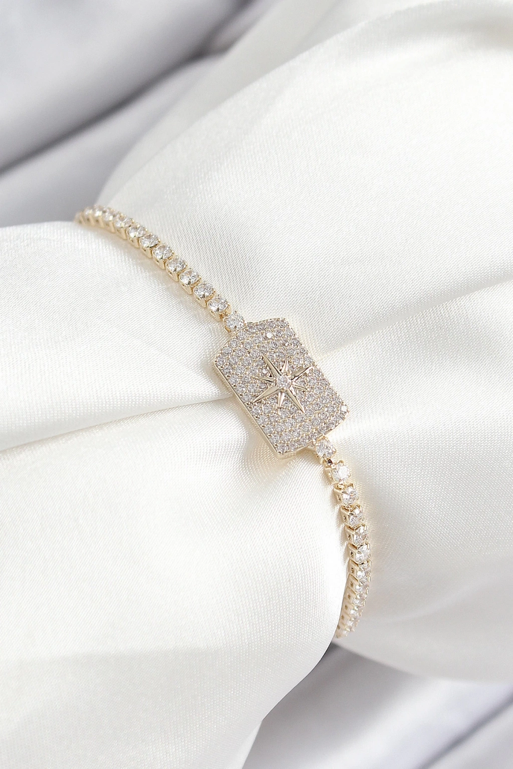 Dodes Dodes Pirinç Zirkon Taşlı Kutup Yıldızı Model Gold Renk Asansörlü Kadın Bileklik TG27BB7466