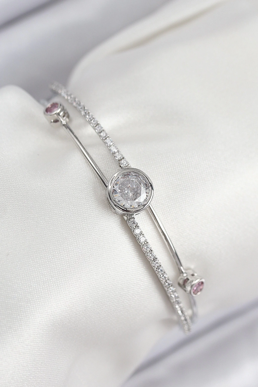 Dodes Dodes Pirinç Zirkon Taşlı Pırlanta Model Gümüş Renk Kadın Bileklik TG27BB7880