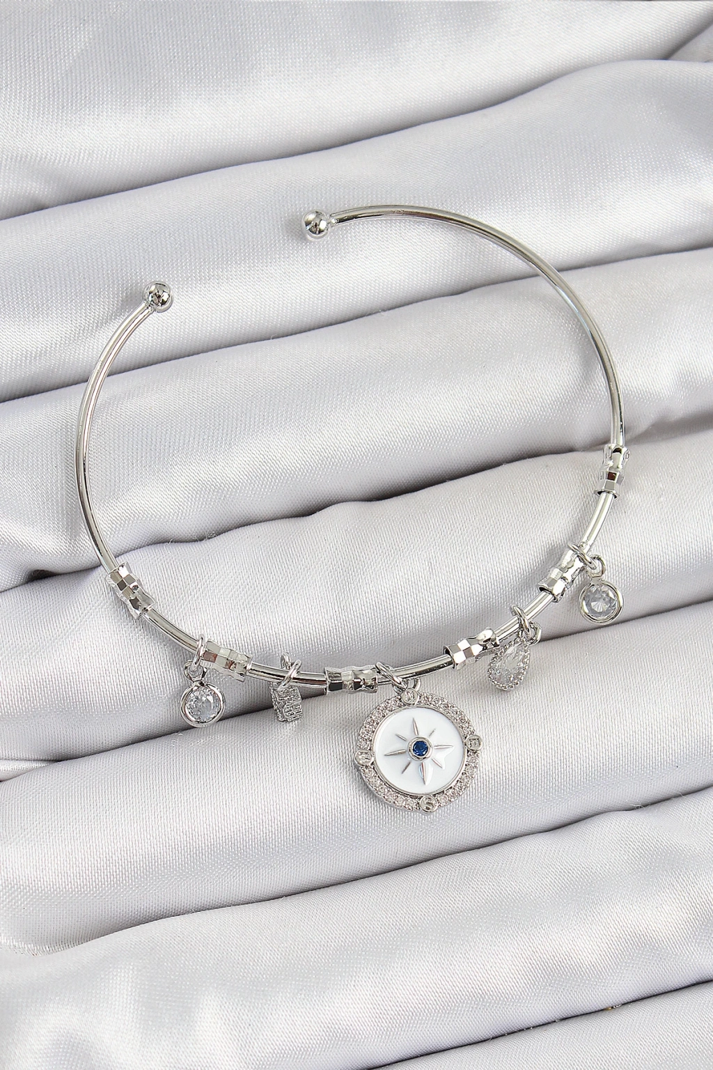 Dodes Dodes Pirinç Zirkon Taşlı Pusula Model Gümüş Renk Charm Bileklik TG27BB7349