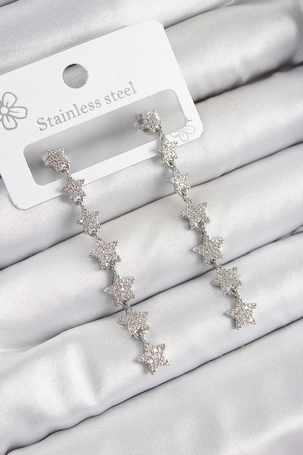 Dodes Dodes Pirinç Zirkon Taşlı Sallantılı Yıldız Model Gümüş Renk Kadın Küpe TG27BKP11116