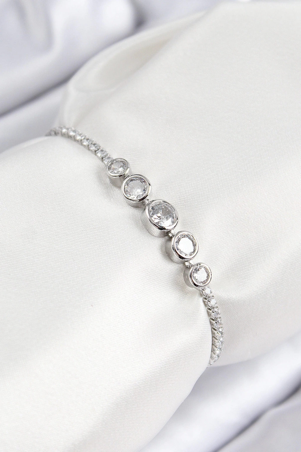 Dodes Dodes Pirinç Zirkon Taşlı Sıralı Daire Model Gümüş Renk Asansörlü Kadın Bileklik TG27BB7718