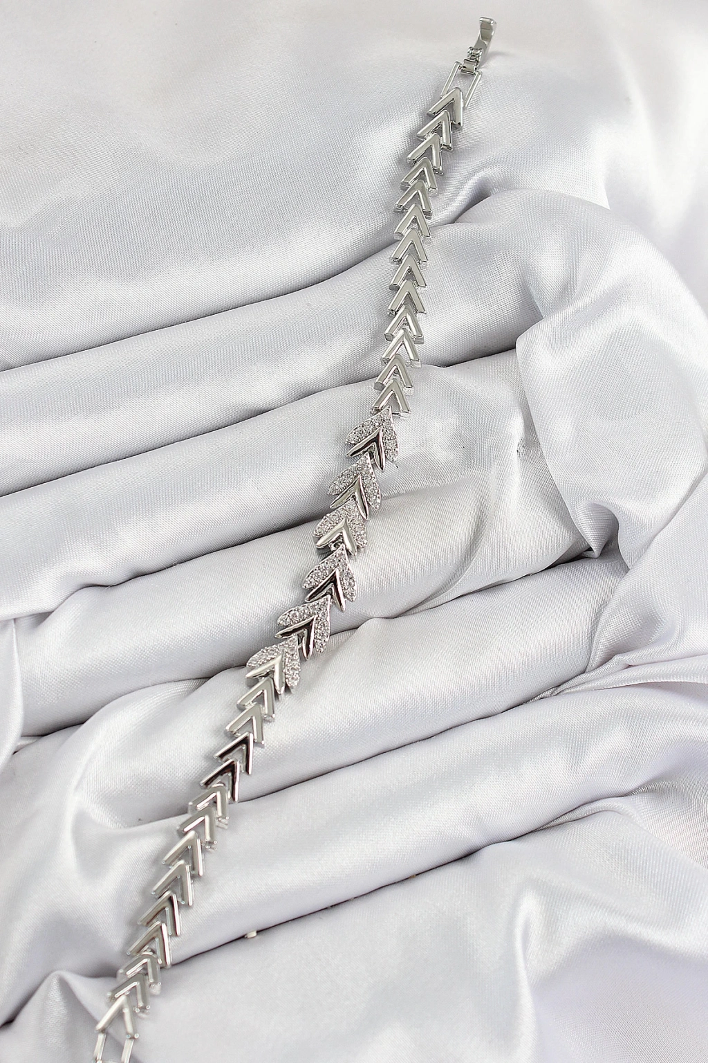 Dodes Dodes Pirinç Zirkon Taşlı Sıralı Ok Model Gümüş Renk Kadın Bileklik TG27BB7560