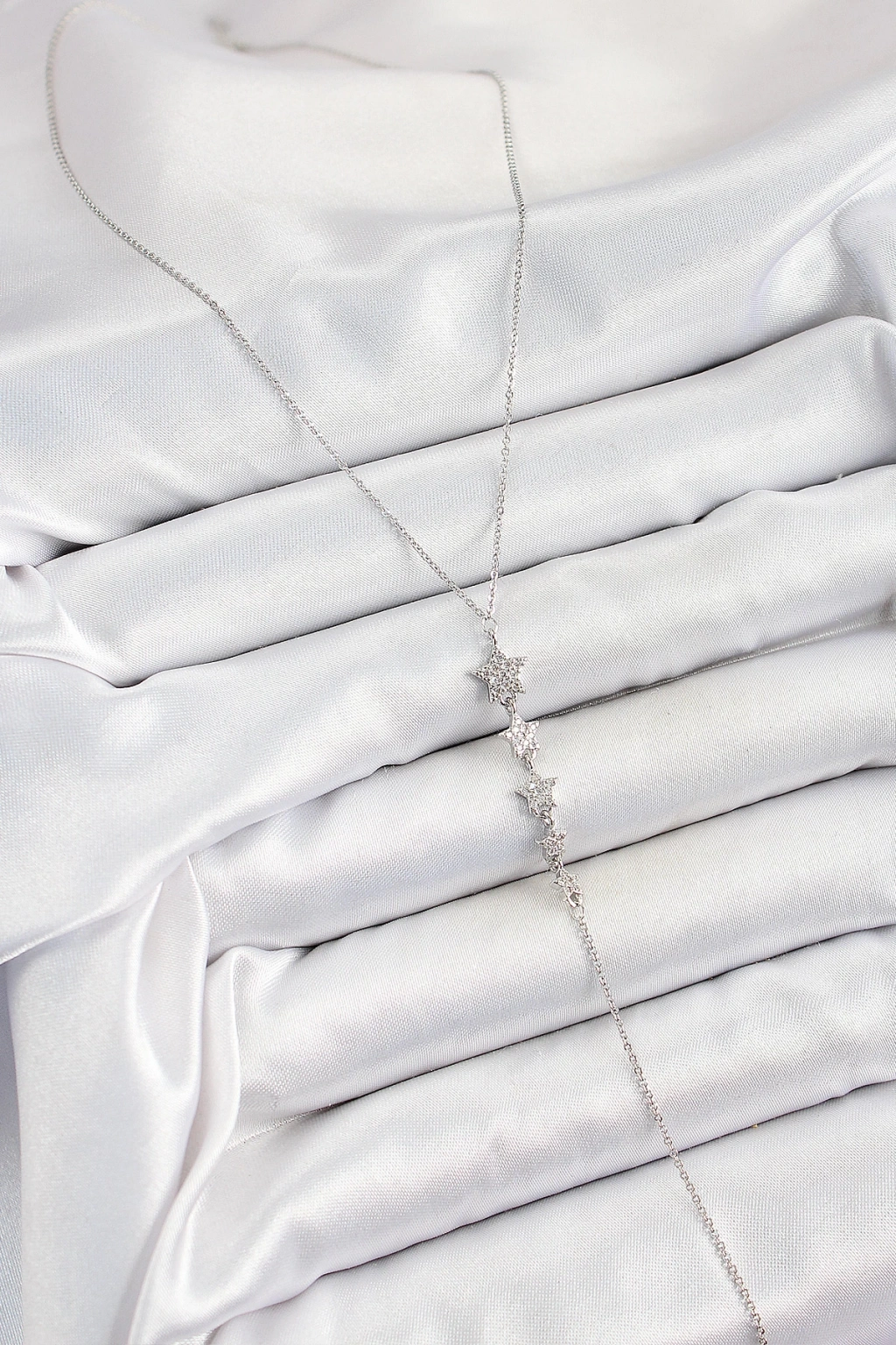 Dodes Dodes Pirinç Zirkon Taşlı Sıralı Yıldız Figürlü Y Model Gümüş Renk Kadın Kolye TG27BKO10313