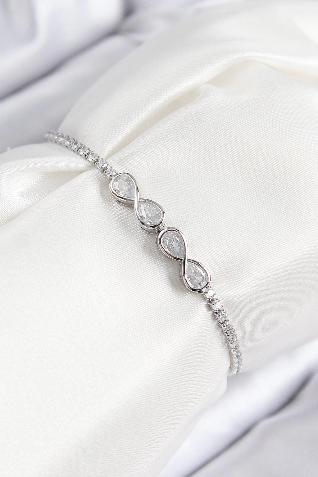 Dodes Dodes Pirinç Zirkon Taşlı Sonsuzluk Model Gümüş Renk Asansörlü Kadın Bileklik TG27BB7720
