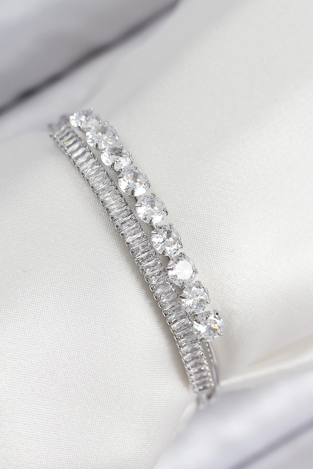 Dodes Dodes Pirinç Zirkon Taşlı Su Yolu Model Gümüş Renk Kadın Bileklik TG27BB7882