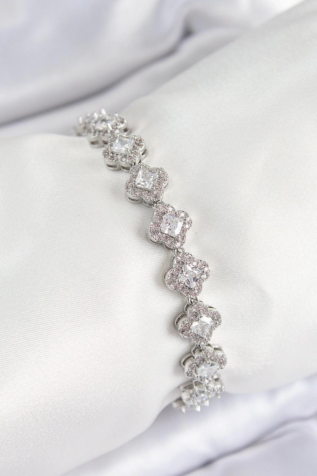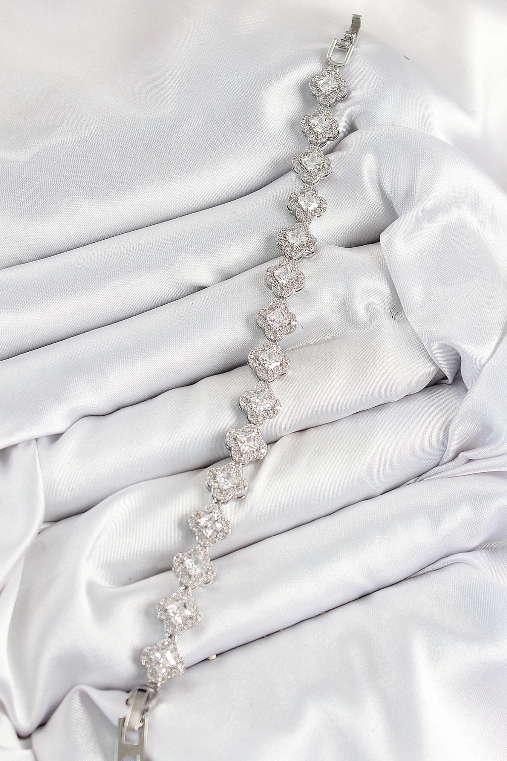 Dodes Dodes Pirinç Zirkon Taşlı Yonca Baget Model Gümüş Renk VIP Seri Kadın Bileklik TG27BB7509