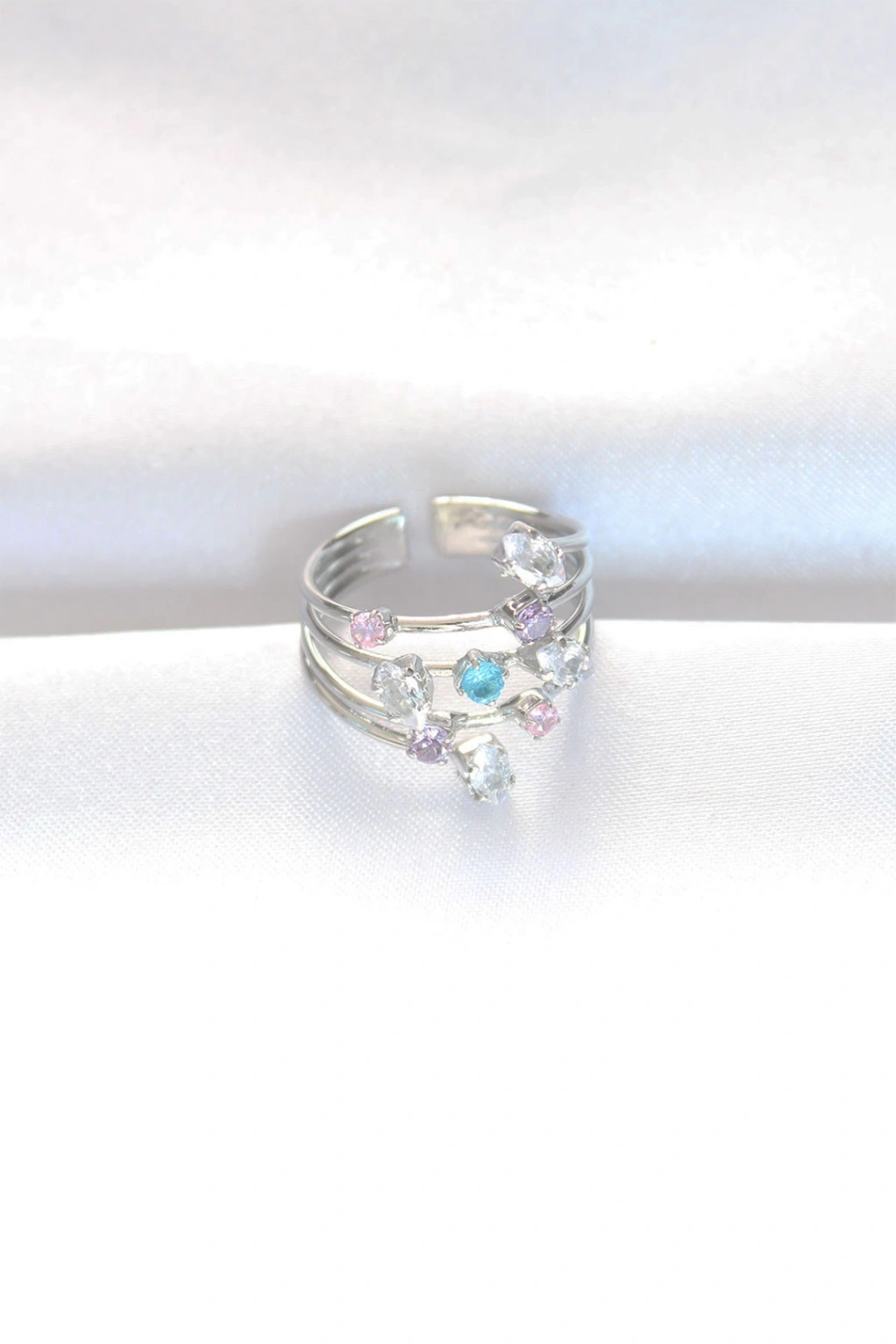 Dodes Dodes Renkli Zirkon Taşlı Silver Renk Ayarlanabilir Yüzük TG27BYK3127