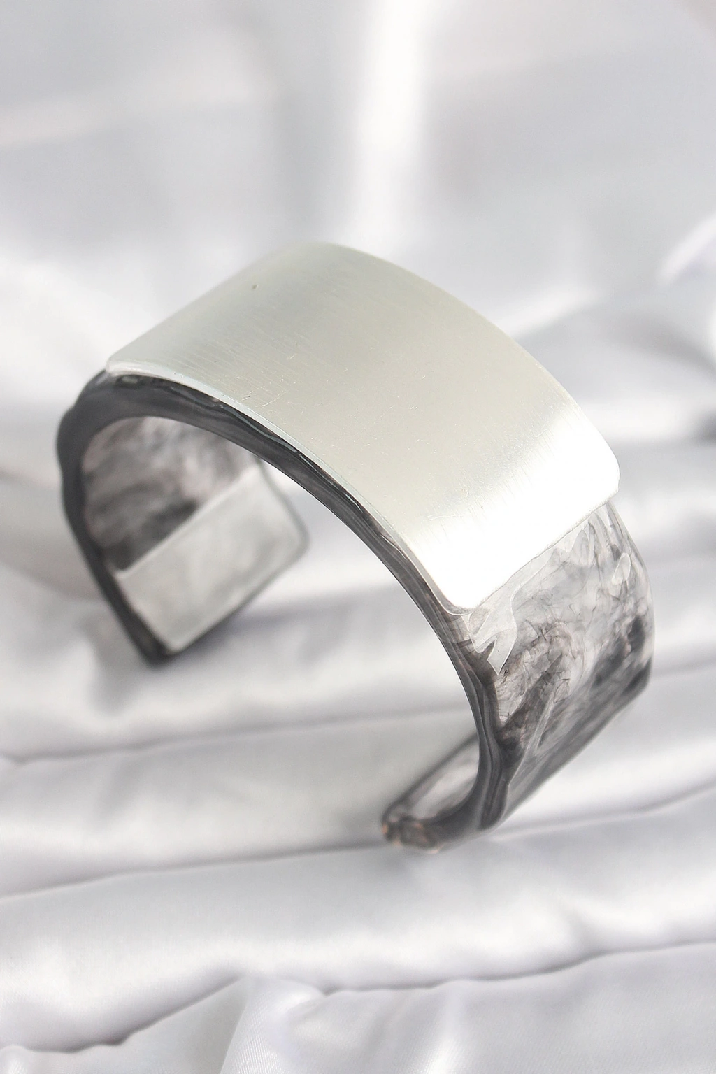 Dodes Dodes Siyah Mermer Desen Akrilik Plastik Dikdörtgen Plaka Model Vintage Kadın Bilezik TG27BB6675