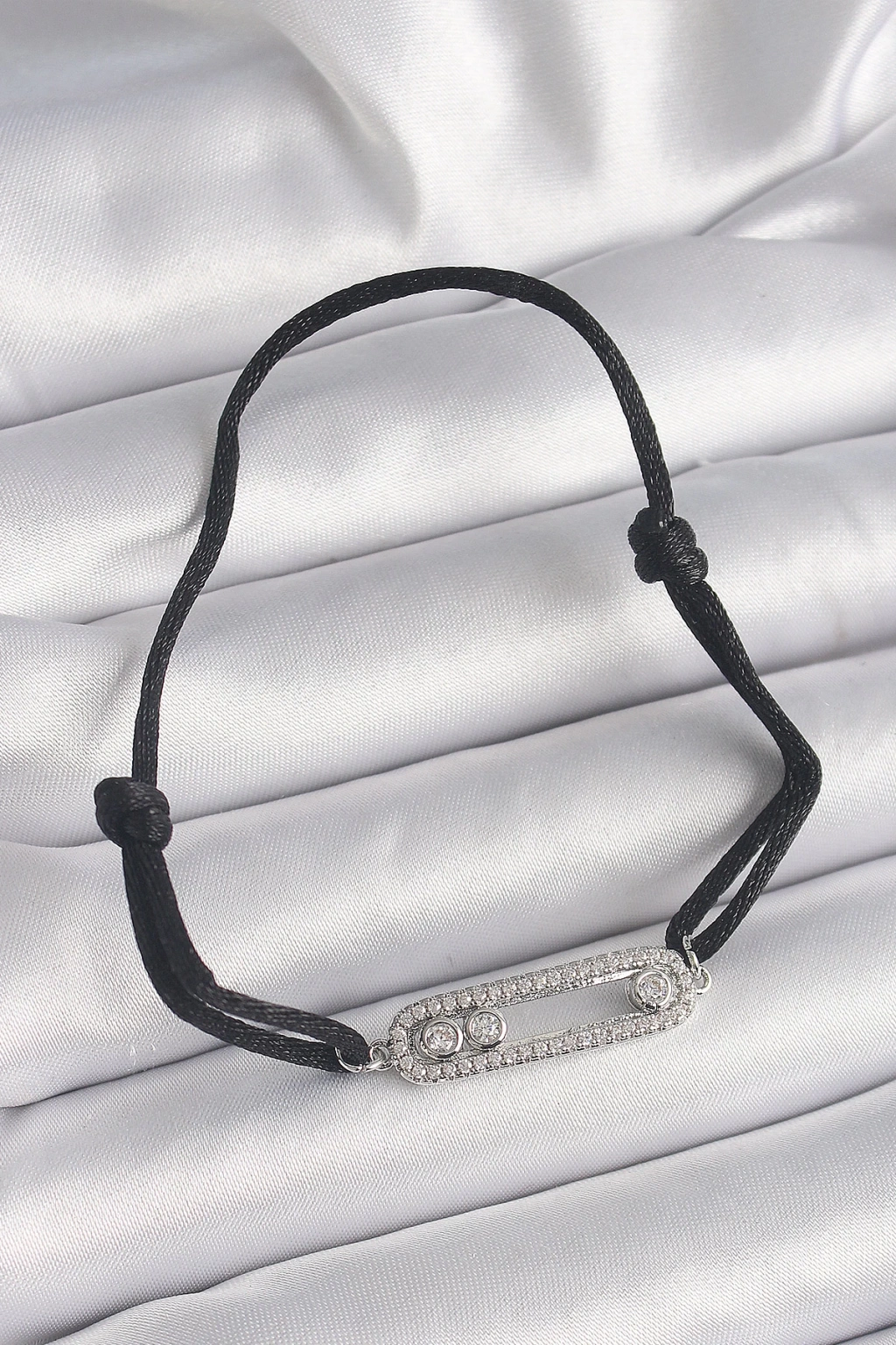 Dodes Dodes Siyah Renk İpli Asansör Zirkon Taşlı Gümüş Messika Model Kadın Bileklik TG27BB6580