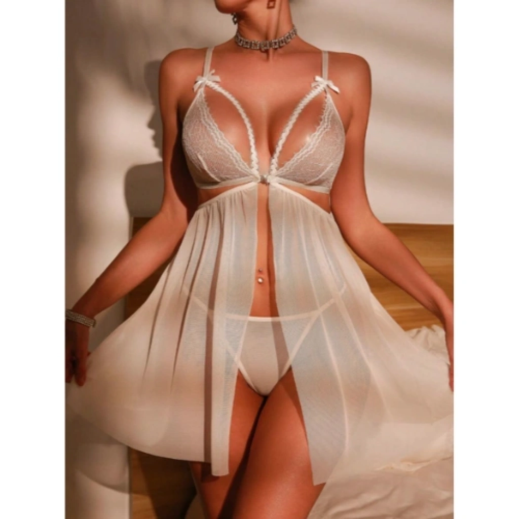 Dodes Tegan Fantezi Beyaz Dantel Sütyenli Transparan Gecelik TG273271