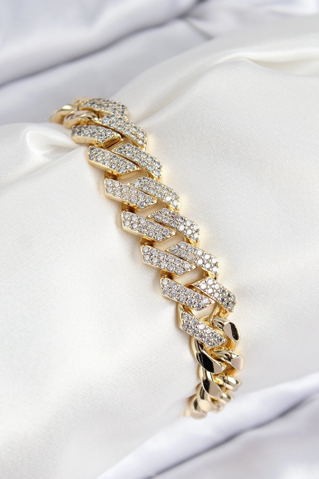 Dodes Dodes VIP Pirinç Zirkon Taşlı Cuba Model Gold Renk Kadın Bileklik TG27BB7765
